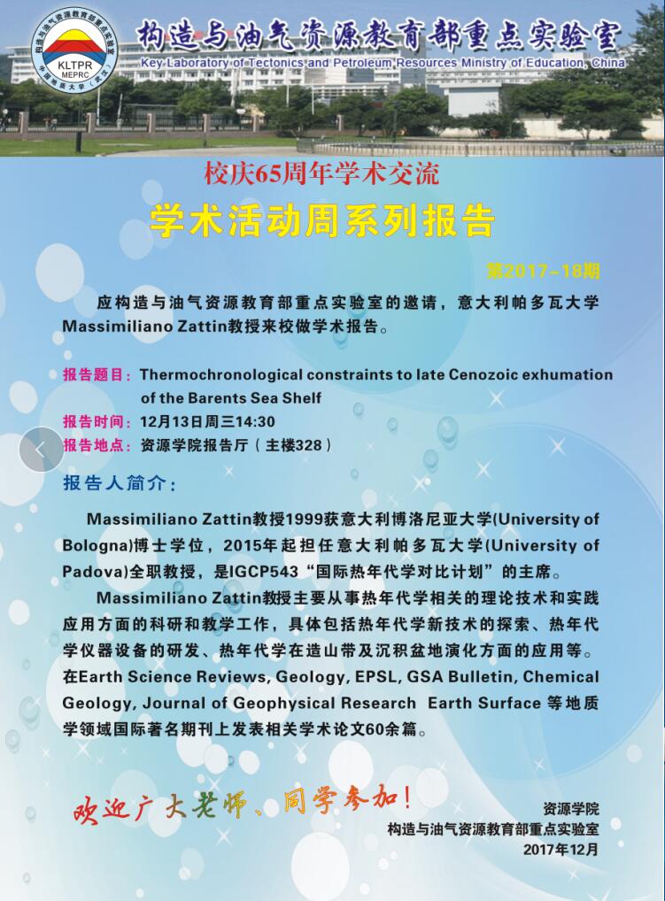 [12月13日]第43期资源学术论坛:Massimiliano Zattin学术报告