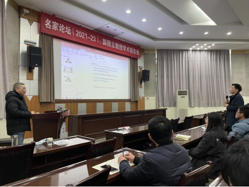 2021年12月20日下午,华中科技大学能源与动力工程学院郭照立教授应邀作客“名家讲坛”,在八角楼学术报告厅作了题为“基于格子Boltzmann方法的渗流微观机理研究”的学术报告。报告会由漫画18