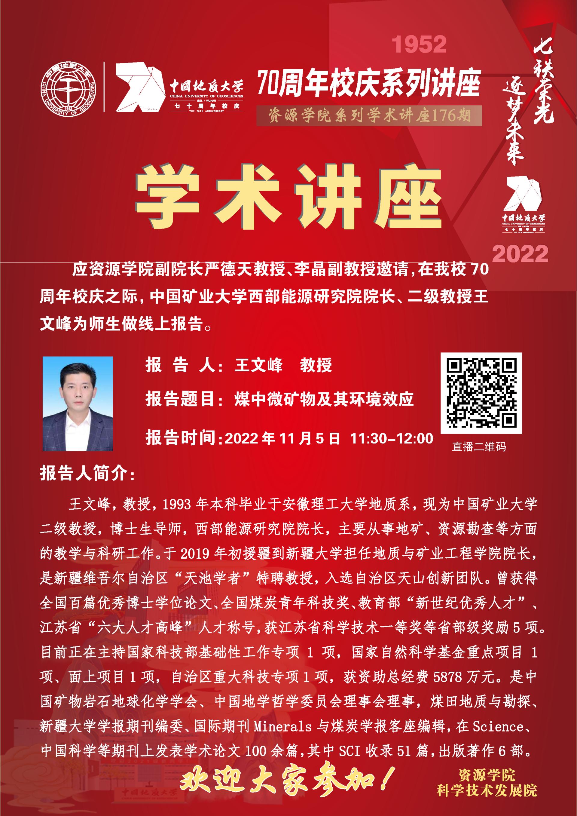 【11月5日】第176期资源学术论坛:王文峰学术报告