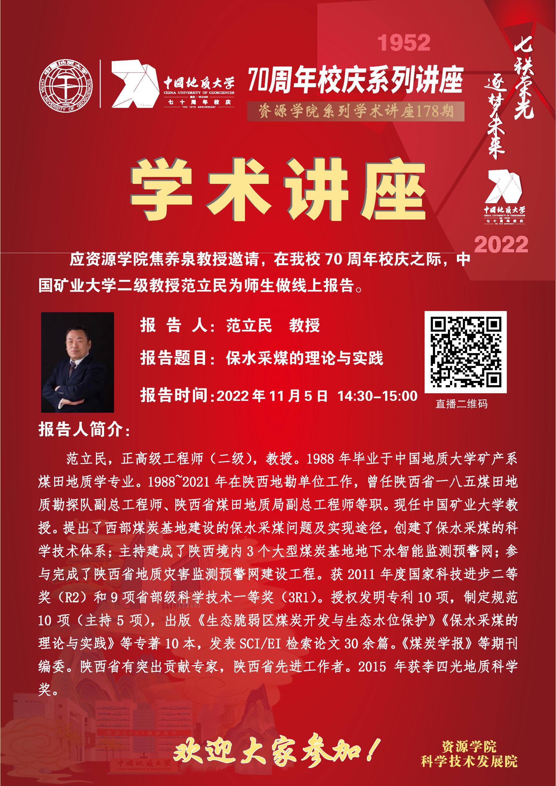 【11月5日】第178期资源学术论坛:范立民学术报告