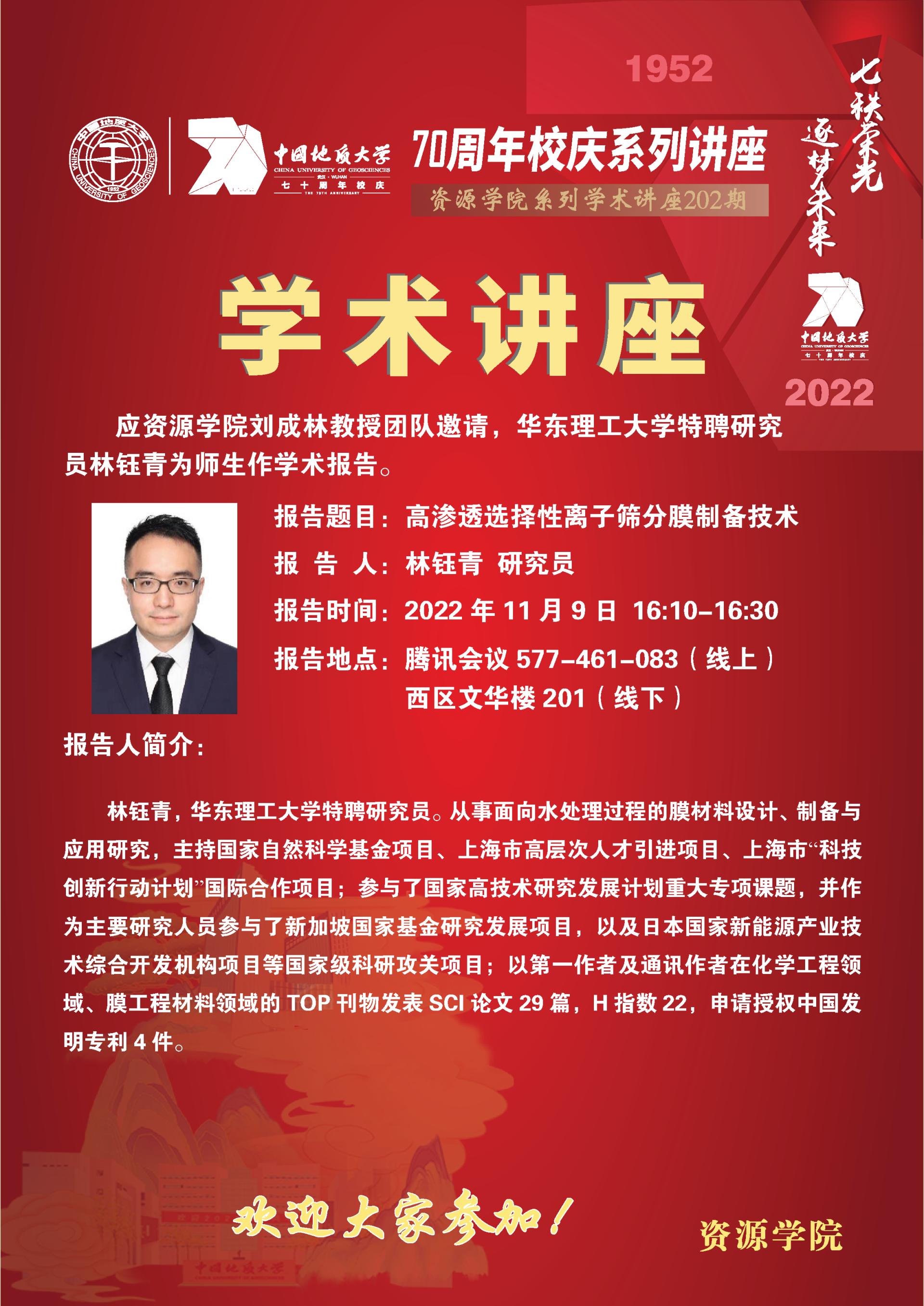 【11月9日】第202期资源学术论坛:林钰青学术报告