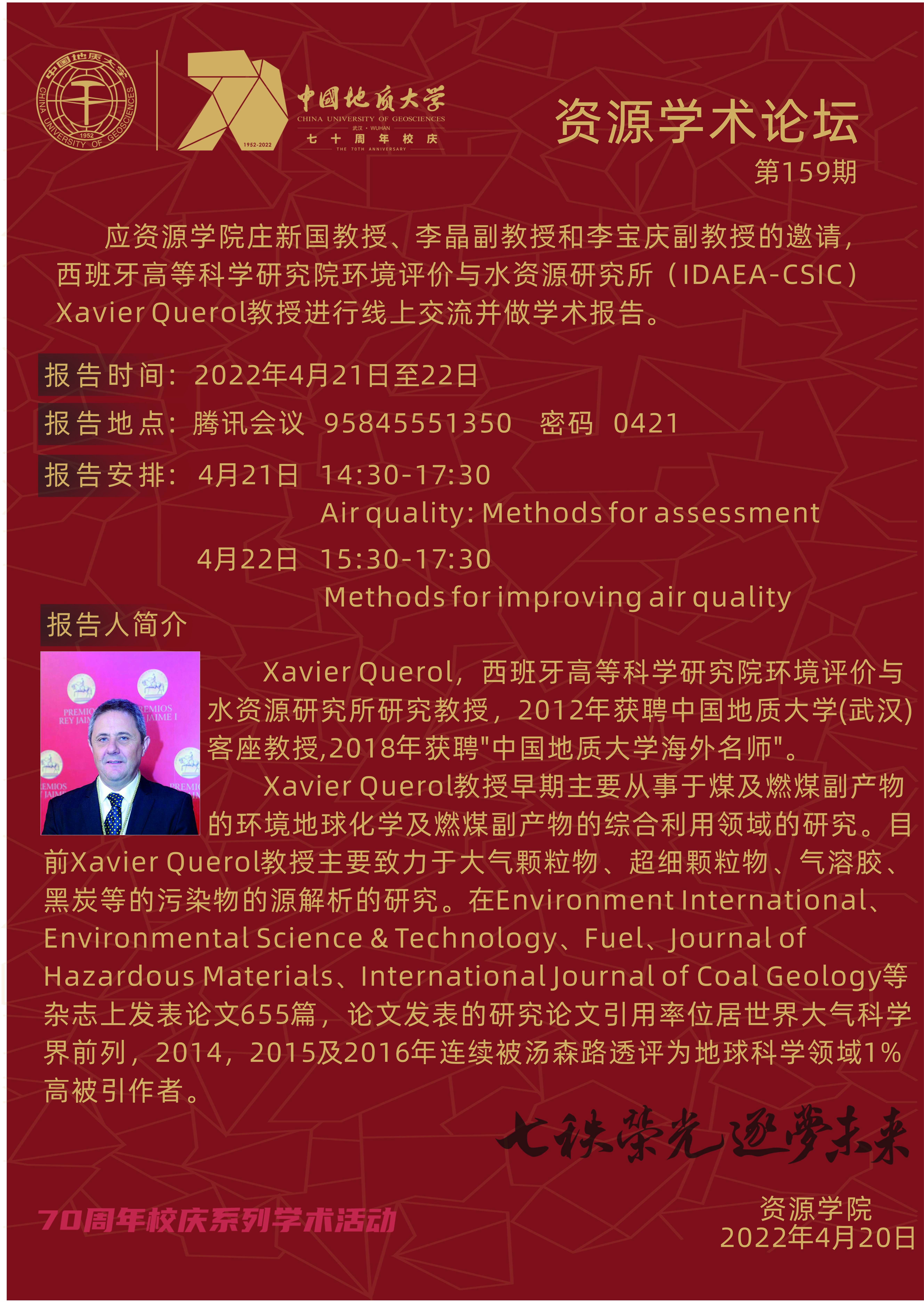 【4月21日-4月22日】第159期资源学术论坛:Xavier Querol 学术报告