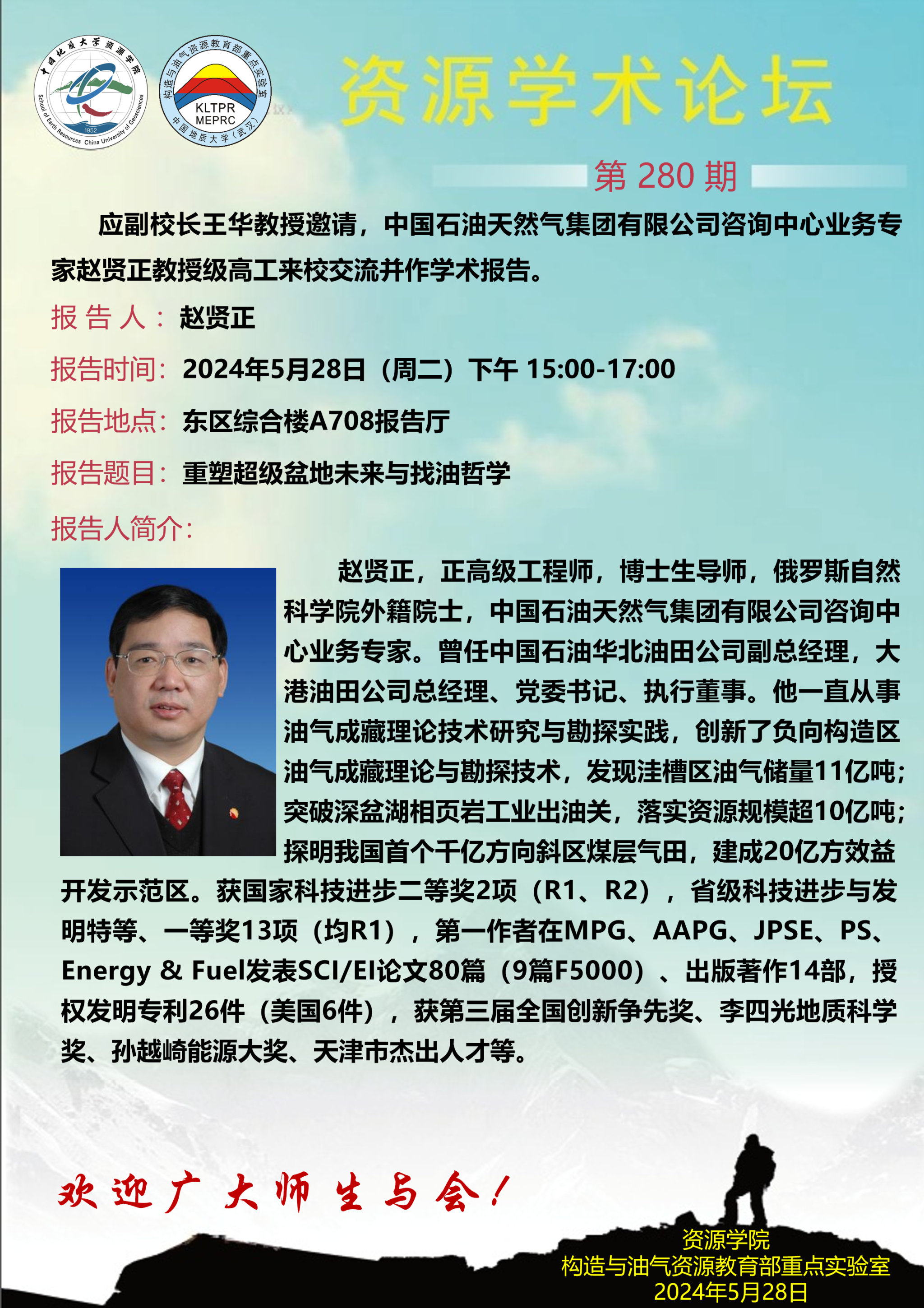 【5月28日】第280期资源学术论坛:赵贤正学术报告