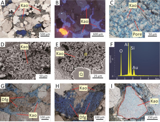 成岩粘土矿物在碎屑岩含油气储层中普遍发育,并对储层致密化过程具有重要影响。研究成岩粘土矿物的成因、来源并揭示其在致密砂岩气储层埋藏过程中的迁移机制与时空分布具有科学意义。自生高岭石是富含铝硅酸盐的砂岩储层的重要成岩组分,这是由于酸性地下水可与不同成岩时期的铝硅酸盐矿物相互作用形成。然而,自生高岭石的沉淀发生在成岩开放或封闭系统中已经争论已久,争论的焦点主要与高岭石沉淀过程中成岩物质的迁移机制与规模有关。