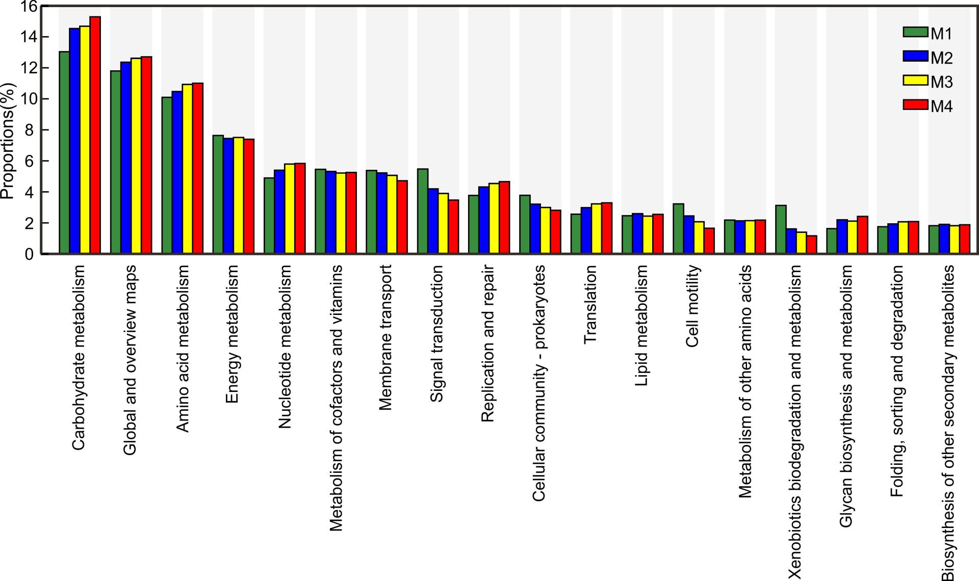 图3 不同培养世代菌群基因功能丰度差异比例图