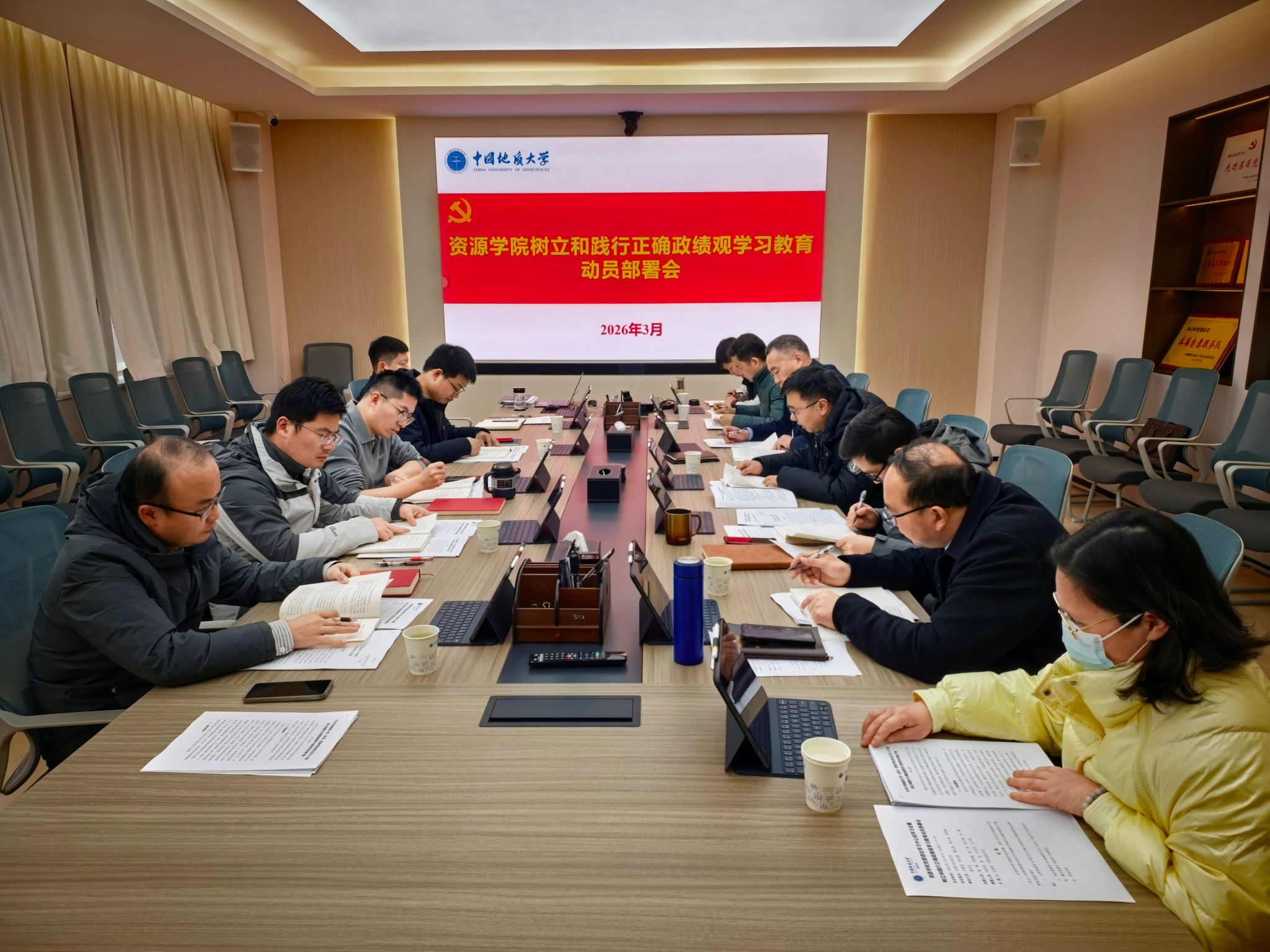 会议集中学习了《习近平关于树立和践行正确政绩观论述摘编》部分篇章、2026年政府工作报告以及学校2026年工作要点等内容。与会人员围绕如何将正确政绩观贯穿学院中心工作,统筹推进“十五五”规划阶段党的建设与学院事业高质量发展等内容,开展了深入交流讨论。