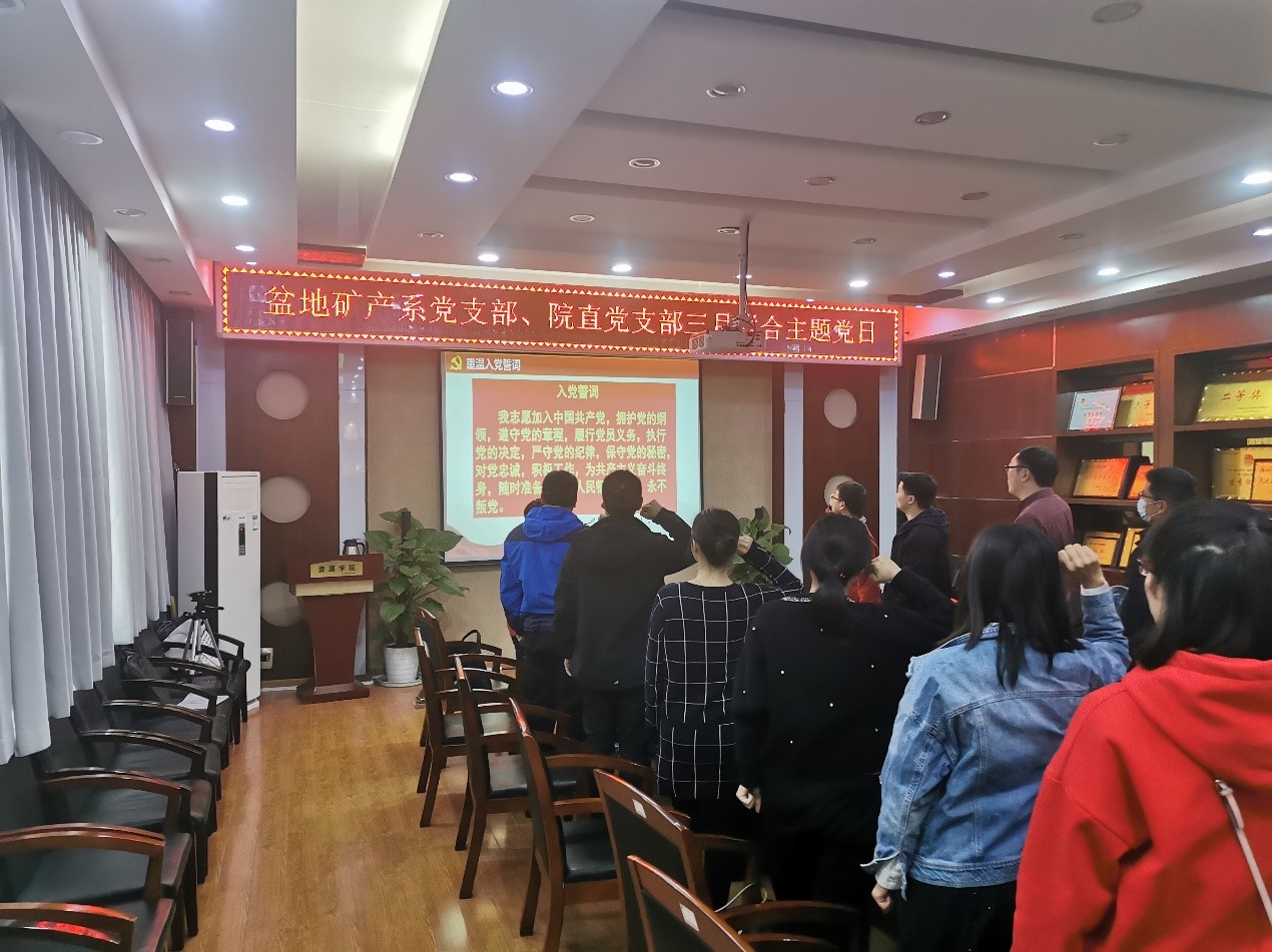 2021年3月26日下午,资源学院盆地矿产系党支部与院直党支部开展联合“党史学习教育”主题党日学习活动。支部全体在校党员参加学习,盆地矿产系党支部书记王小明主持学习活动。
