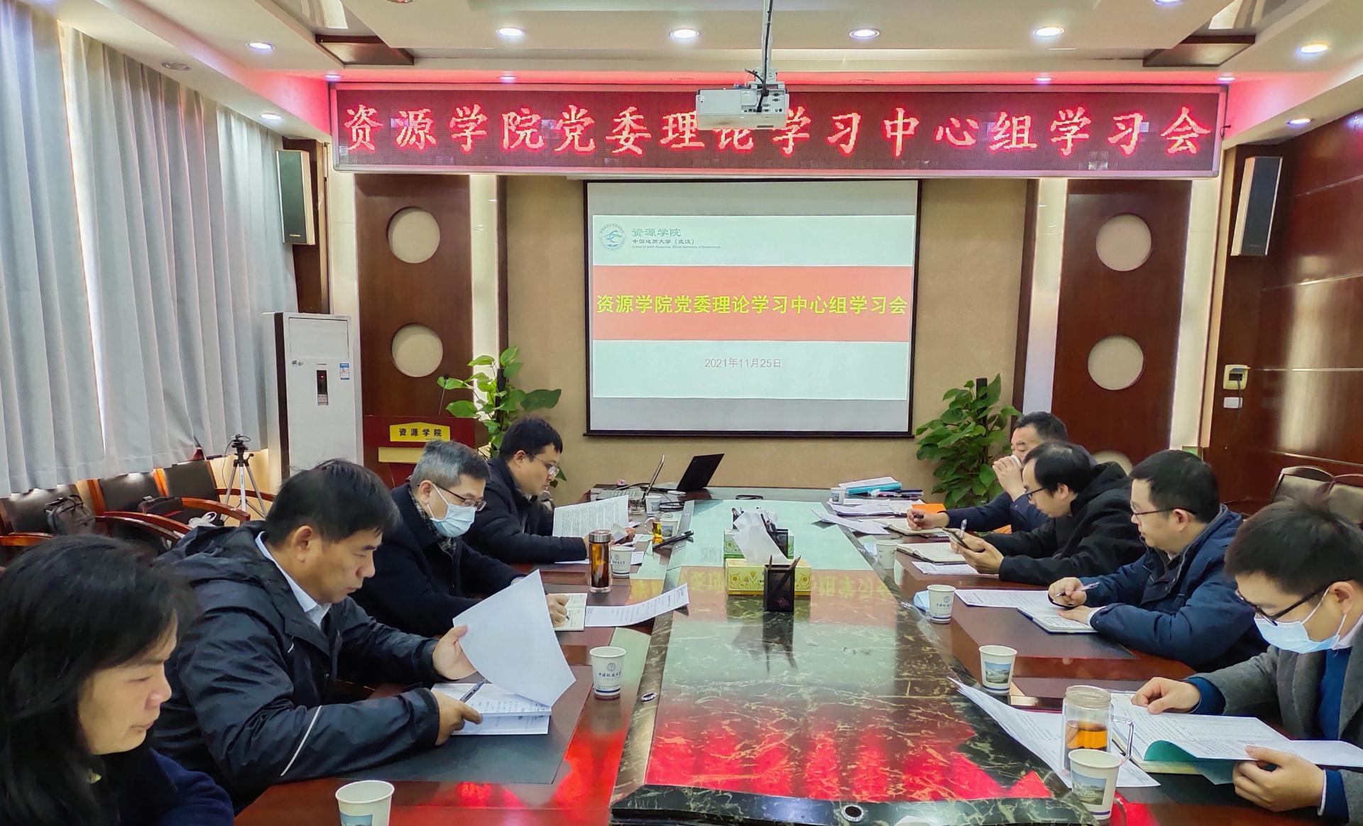 11月25日,资源学院党委理论学习中心组举行集体学习,传达学习党的十九届六中全会精神、习近平总书记在纪念辛亥革命110周年大会上的重要讲话精神和在中央人才工作会议上的重要讲话精神,部署了学院党史学习教育和师德师风建设等工作。院党委理论学习中心组成员、党史学习教育专题读书班成员参加会议,院办、工会、团委负责人列席会议。党委书记高复阳主持会议。