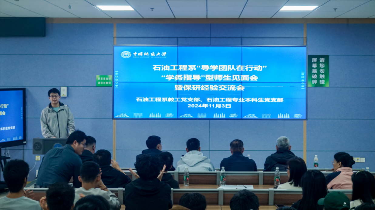 (通讯员张蔚张恒)2024年11月3日,资源学院石油工程系师生党支部在东教楼C0109教室联合召开“导学团队在行动”系列活动之“学务指导”型师生见面会暨保研经验交流会。资源学院党委副书记谭文伦,副院长钟志,石油工程系主任李恒、党支部书记张恒、科研教学团队教师(导学团队)、2024级本科班主任及党员责任区负责人,2024级本科生、2021级本科生代表出席会议。会议由石油工程专业本科生党支部书记张蔚主持。