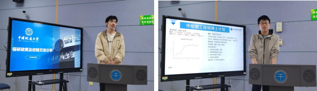 2021级本科生匡霁阳和张蔚分别就资源学院的保研政策进行了宣讲,并结合自身经历,分享了保研经验、保研心得和注意事项。