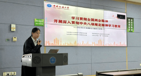 (通讯员:刘玉龙)阳春三月暖,党旗映初心。3月27日,马克思主义学院青马明责党支部、青马强国党支部、资源学院油气钻采研究生党支部及红色之声递“薪”引力宣讲团齐聚中国地质大学(武汉)C106教室,以“学习贯彻全国两会精神、开展深入贯彻中央八项规定精神学习教育”为主题,开展联合主题党日活动。活动通过重温入党誓词、学习重要精神、聆听登山故事等形式,将红色基因与科学家精神深度融合,为全体党员上了一堂生动的思想教育课。