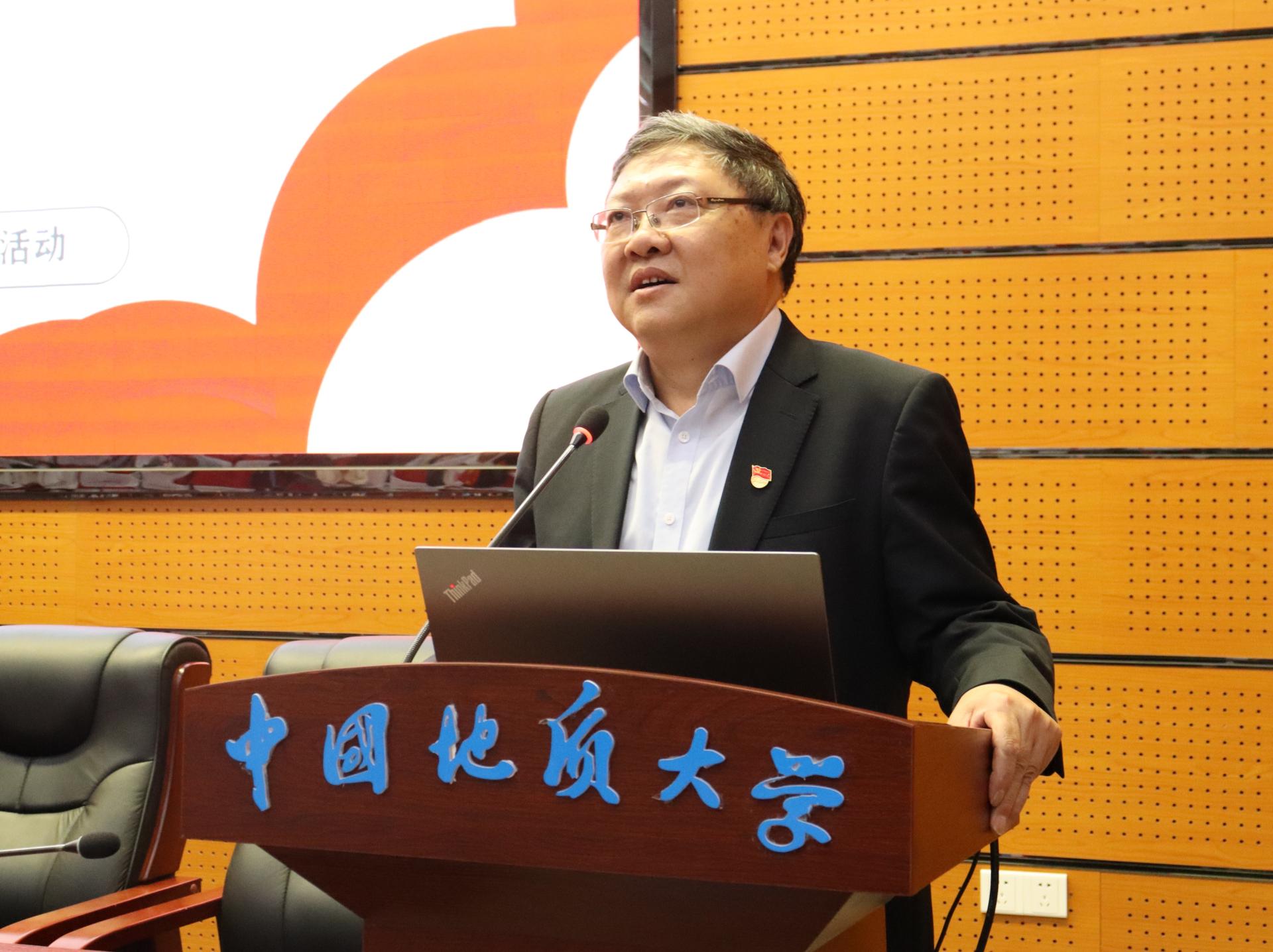 储祖旺总结讲话。他讲到,湖北省地质局第一地质大队始终秉承地质“三光荣”精神,在65年艰苦奋斗中,为国找大矿、找好矿,成效显著,功勋卓越,向一队和长期扎根生产一线的地质工作者表示诚挚敬意。他表示,习近平总书记高度重视能源资源事业,党和国家事业发展向广大地质工作者发出新的召唤,建设社会主义现代化强国需要新时代地质工作者的接续奋斗,地大青年、资源青年干事创业的前景光明、舞台宽广,要珍惜美好时代机遇,发扬优良传统,坚定报国理想,夯实专业本领,勇做有能力、有信心、有情怀的地质工作者。他讲到,资源学院党委贯彻落实习近平总书记重要回信精神,举办地质找矿先进事迹报告会、组建资源能源宣讲团,是面向社会、面向学校讲好地大办学故事的重要举措,要认真集中备课、广泛宣讲宣传,争做学校“美丽中国讲师团”中的生力军。他表示,在长久办学历史中,学校坚持开放办学,始终在挑战中前行,为解决区域、行业乃至人类面临的资源环境问题做出了重要贡献;面向新时代,站立建校70周年新起点,学校围绕“共创美丽中国、共建宜居地球”做出战略部署,在全面建设地球科学领域国际知名研究型大学进程中阔步向前。他希望,资源学院和湖北省地质局第一地质大队持续深化合作,依托党建联建共创,积极打造校企合作、产教合作新范式,共同为新一轮找矿战略突破行动、为服务国家能源资源事业做出新贡献。