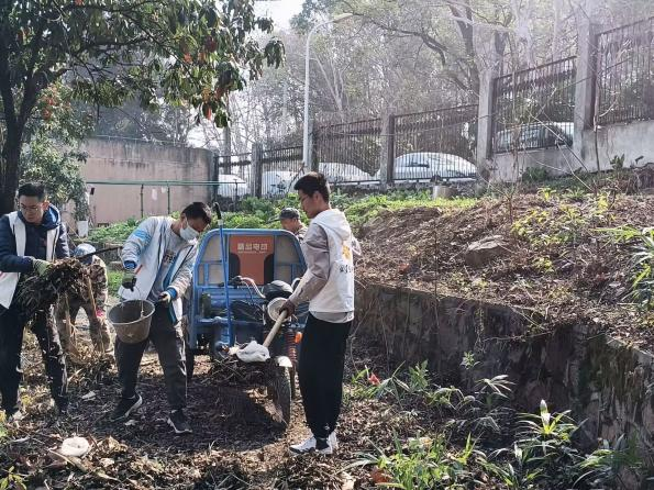 3月5日上午,“小红星”们于北区映山塘前集合并进行活动前培训。同学们与北区社区工作者对接后领取清扫工具,在工作人员的指导和帮助下共同进行清扫活动。在工作过程中,志愿者们互相帮助,清扫了北区映山塘周围社区的枯枝败叶和垃圾。经过志愿者们共同的努力,原本脏乱的地面变得干净整洁。上午十一点,清扫活动圆满结束,获得社区工作者的一致好评。活动结束后,学生志愿者与社区志愿者合影留念。