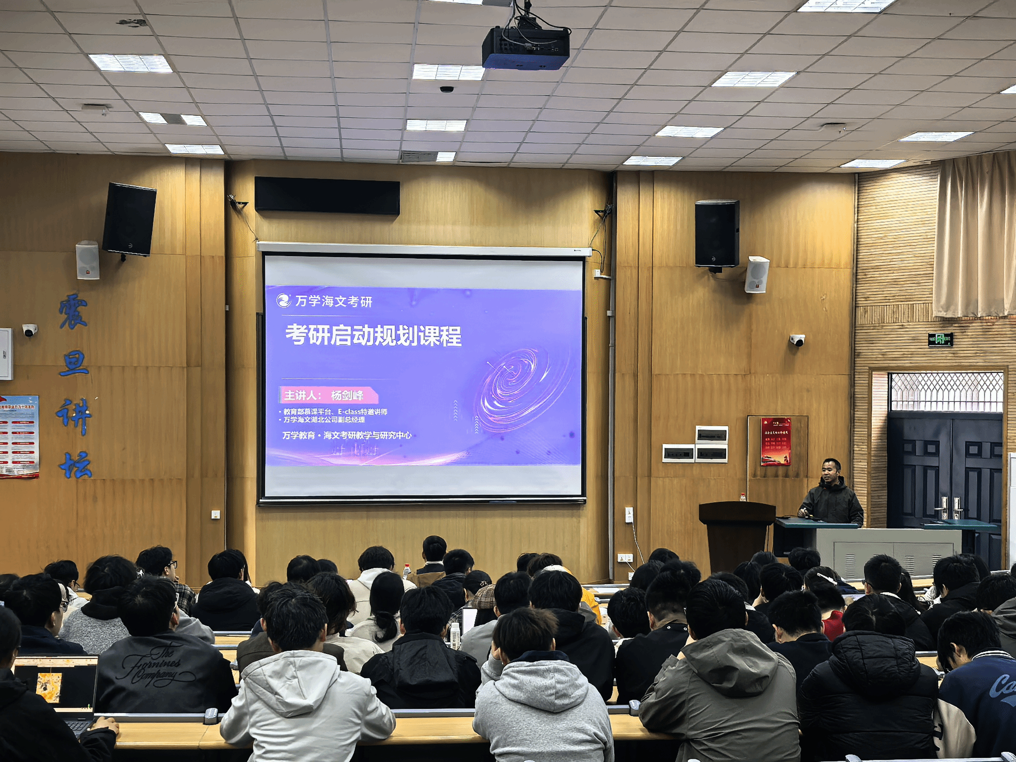 海文考研副校长杨剑峰作考研形势分析与规划报告。他从考研的必要性切入,指出当前就业结构性矛盾突出、优质企业对院校和学历门槛的要求日益提高,考研是综合性价比最高的毕业方向之一。他强调,在考研这条路上“选择大于努力”,需要明确自身发展方向。他系统介绍了考研宏观形势、院校专业选择方案及基础阶段复习规划,帮助同学们在升学备考的道路上明方向、强基础、提效率。