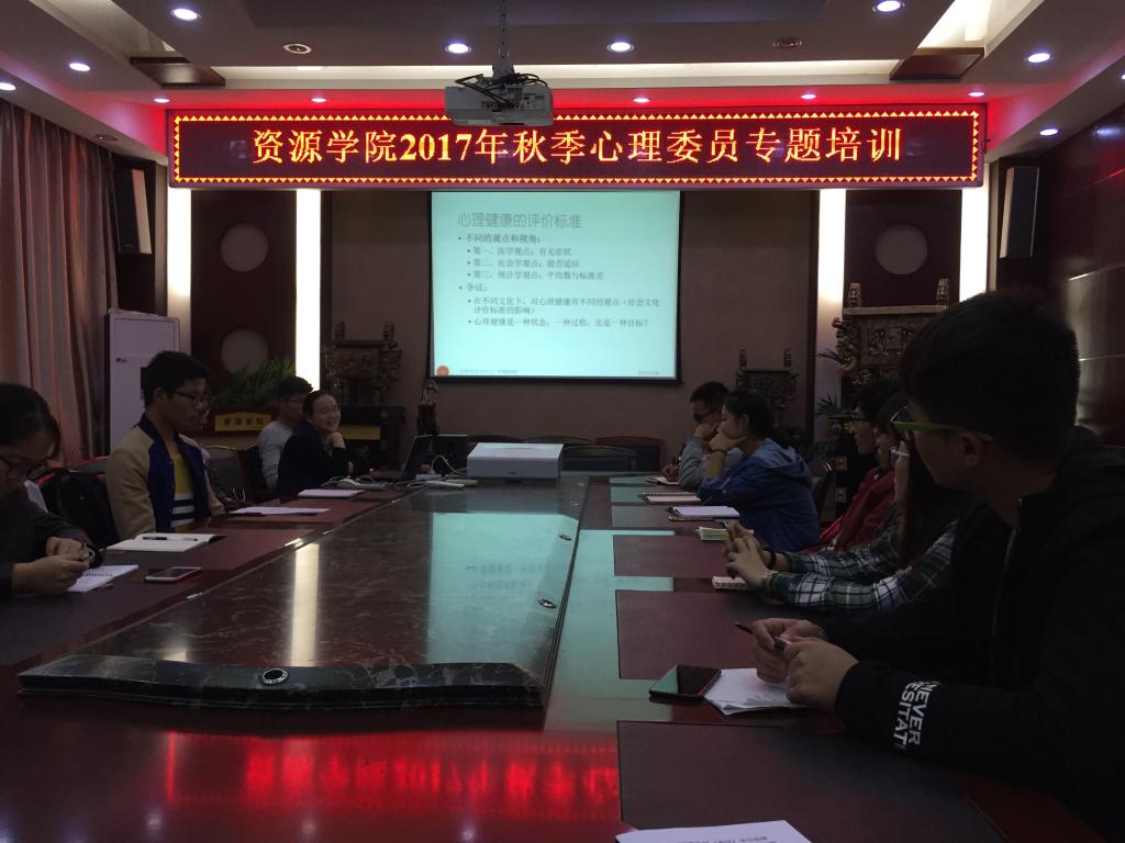 主楼330报告厅,参加学院举行的2017年秋季学期心理委员专题培训。此次培训会学院邀请到了大学生心理咨询中心的周春燕老师,。培训会由学院心理联络员章帆主持。