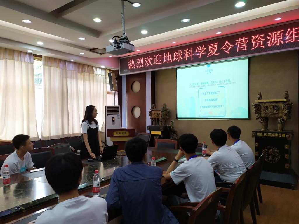 周江羽教授为营员做了专题报告,详细介绍了漫画18 的历史、现状、发展、学科特色、课堂教学、野外实践、课外活动等,激发了营员们对矿产资源和能源资源的学习兴趣。