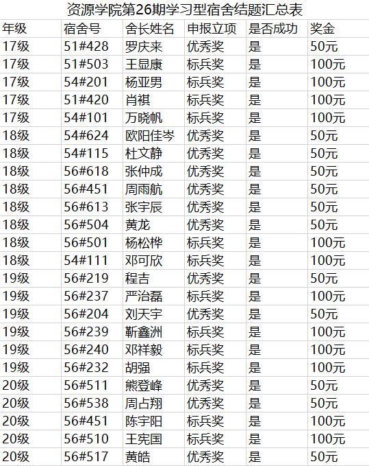 希望结题成功的宿舍继续保持,争取再创辉煌!也希望其他宿舍向这些宿舍学习,争取在下一期活动中结题成功!