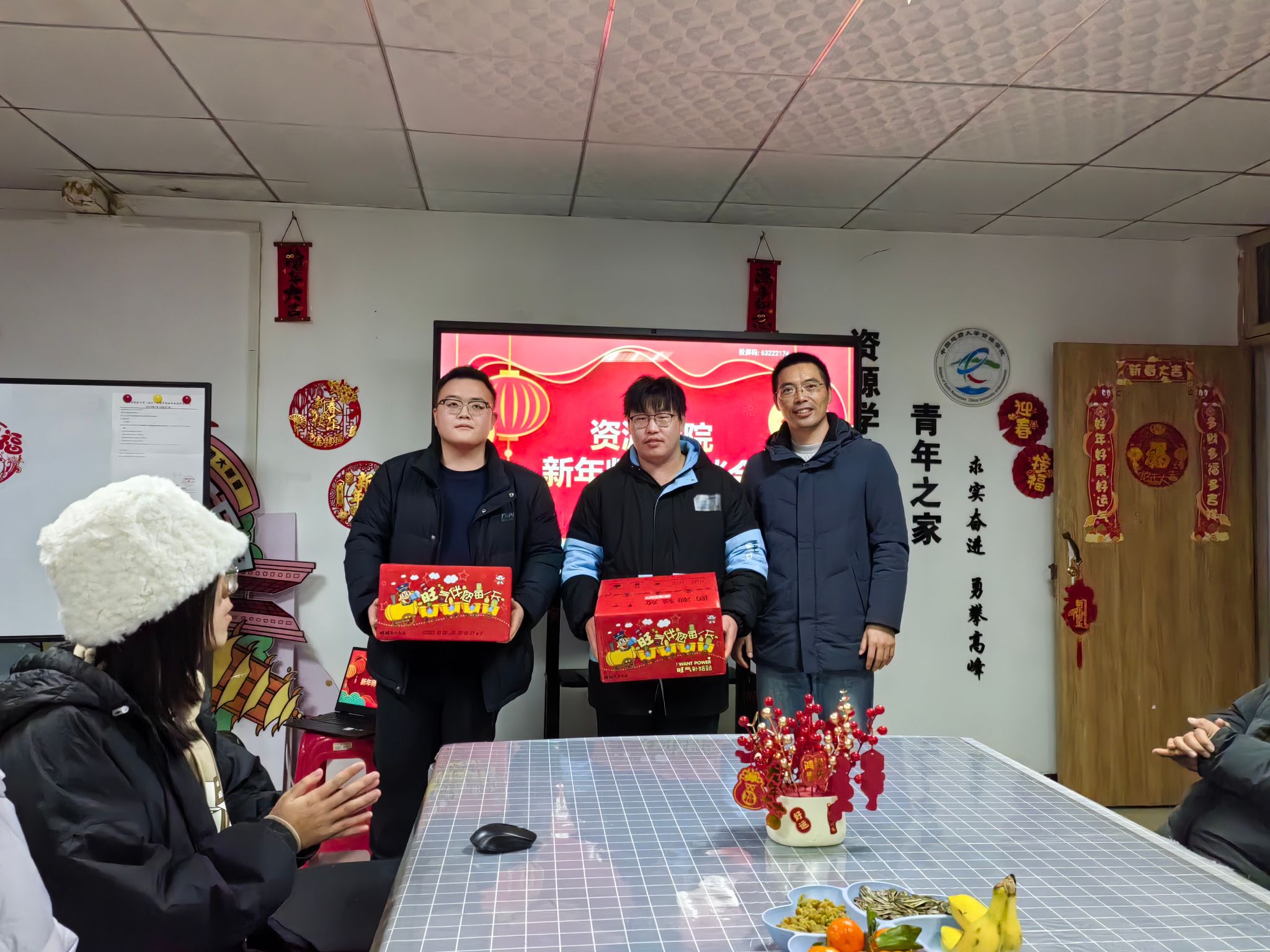 12月31日,“百福迎新”资源学院2024新年师生座谈会在56栋资源青年之家举行。学院党委书记高复阳、院长严德天、党委副书记谭文伦、辅导员彭鑫、霍少孟参加活动,与同学们欢聚一堂,共度佳节、共话成长。