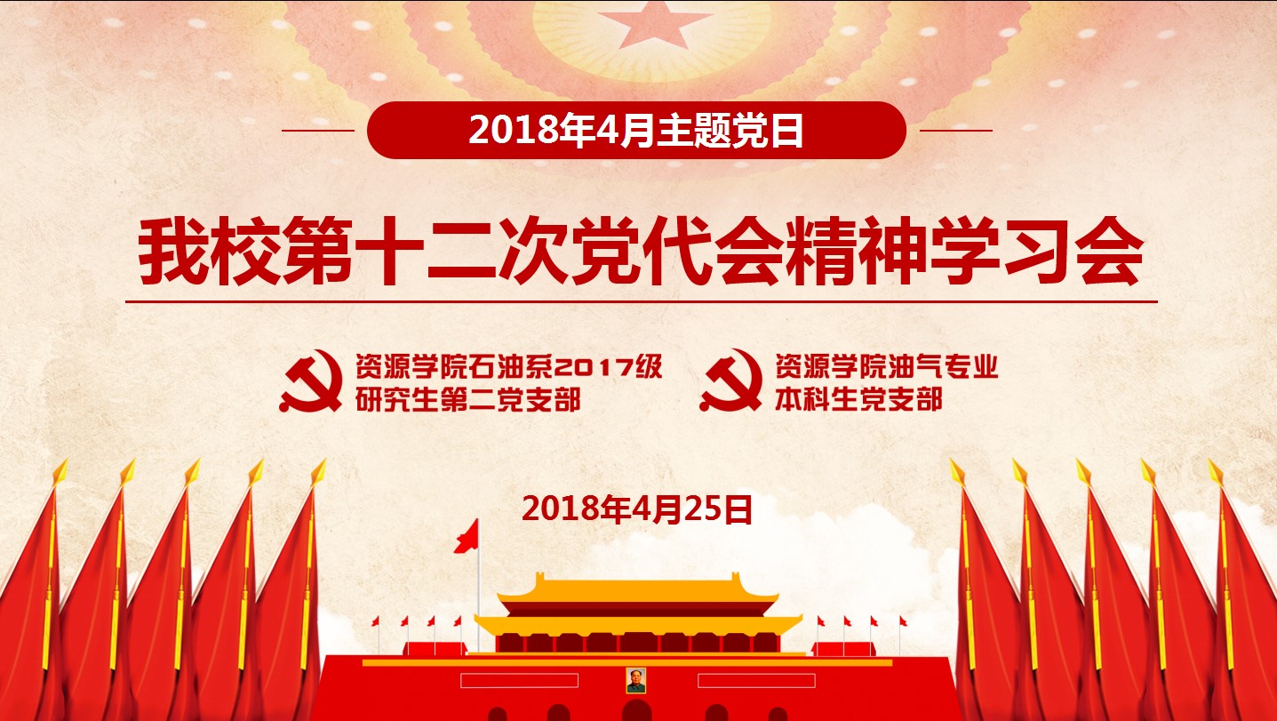 (通讯员 张扬 摄影 冯芊)为了深入学习习近平新时代中国特色社会主义思想、党的十九大精神和学校第十二次党代会精神,同时为了加强研究生党支部和本科生党支部的纵向交流与共建,4月26日中午12时30分,在大学生学习支持中心7号学习室,资源学院石油系2017级研究生第二党支部与资源学院油气专业本科生党支部联合举办“我校第十二次党代会精神学习会”主题党日活动。