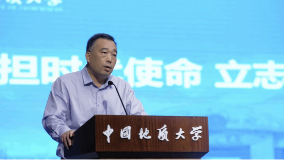 校友代表、高级工程师、紫金矿业集团西北地质矿产勘查有限公司董事长刘光永发言。他结合自身从业经历,寄语同学们树立 “地质报国” 的远大理想,始终保持对资源领域的热爱与探索欲,充分依托地大优质的成长平台,在专业学习与实践中锤炼本领,早日成长为懂技术、有担当、能报国的高素质地质人才。