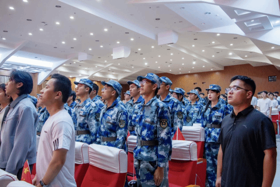 开学典礼在庄严的国歌中拉开序幕。