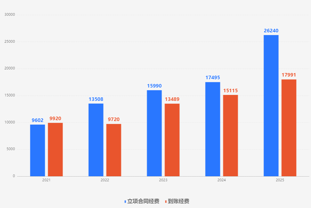 聚焦四个面向,以国家战略需求为导向,持续推进有组织科研攻关,创新校企合作机制。组建28个科研团队和10个校企合作工作专班,积极拓展国家科技重大专项项目和企业重大科技攻关项目,全年立项合同经费26240万,到账经费共计17991万。获批国家自然科学基金青年科学基金项目(A类)1项、联合基金重点项目1项。获批国家科技重大专项深地项目1项,重大专项课题/子课题38项。获批国家重点研发计划青年科学家项目2项。何治亮教授同中石油西北油田分公司签订重大横向项目1项(项目经费1287.5万)。获得省部级科研成果奖励10项,其中一等奖4项;1人获自然资源部地质找矿优秀青年科技人才通报表扬;1项技术入选自然资源部先进适用技术目录。