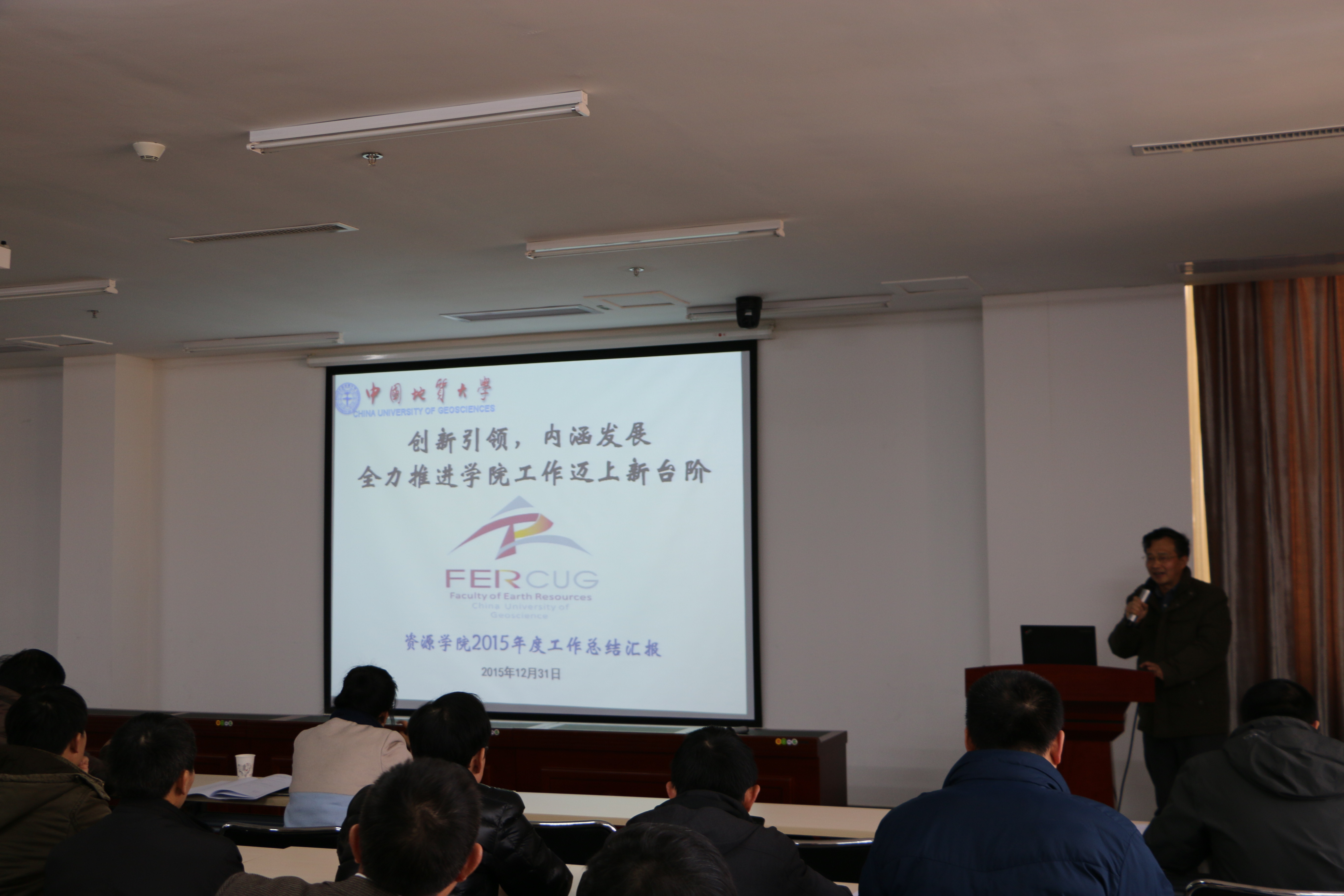 院长解习农作了题为《创新引领 内涵发展 全力推进学院工作迈上新台阶》的2015年工作报告,报告从党风廉政、学科建设、人才引进、师资队伍等六个方面全面回顾和总结了过去一年来学院各方面的工作和成绩,并对学校相关政策文件—《学术卓越计划》进行了介绍。他还梳理了学院目前存在的困难与问题,并明确了学院十三五学科建设规划的总体思路及工作重点等。接着,他向与会代表作了《资源学院2015年财务工作报告》,报告了2015年学院的各项收支情况。