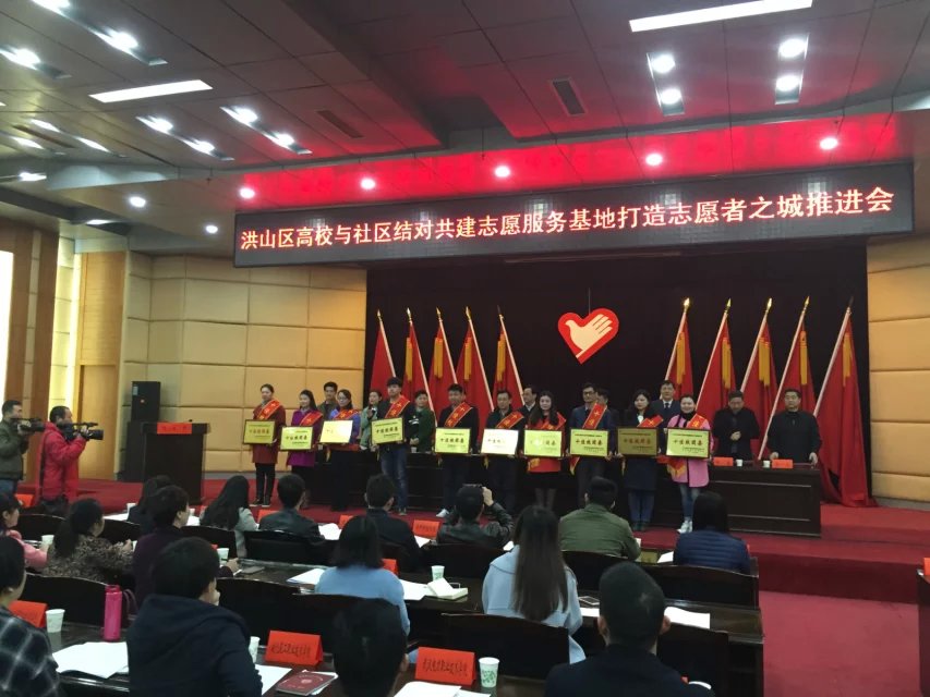 3月3日上午,由洪山区文明办、团区委主办的“洪山区高校与社区结对共建志愿服务基地打造志愿者之城推进会”在洪山区政府机关二号厅隆重举行。在本次会议上,五十多家单位及个人获得荣誉,令人欣喜的是,资源学院红星青年志愿者协会在众多获奖单位中脱颖而出,荣获“十佳志愿服务团队”的称号,并获得10000元工作经费的奖励。