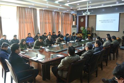 2015年1月8日下午2:30,2014年度教育教学工作会议——资源学院交流研讨会在主楼328资源学院学术报告厅召开。校党委书记郝翔、教务处副处长吕占峰、人事处副处长周刚、校团委副书记胡肖等职能部门领导以及资源学院领导和教师代表、学生代表参会。会议由资源学院院长解习农主持。