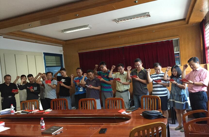 按照主题党日活动的要求,全体与会党员共唱国歌,并在孙华山同志领誓下重温了入党誓词,诵读党章,随后集体学习中组部《关于中国共产党党费收缴、使用和管理的规定》,并传达学校、学院党委有关党费补缴工作具体事宜,指出党员同志应按时、足额缴纳党费;并紧密结合2016年“两访两创”活动、党建工作任务指导书制度会议、深入学习贯彻习近平总书记系列重要讲话精神等安排,强调举办主题党日活动的必要性和重要性。