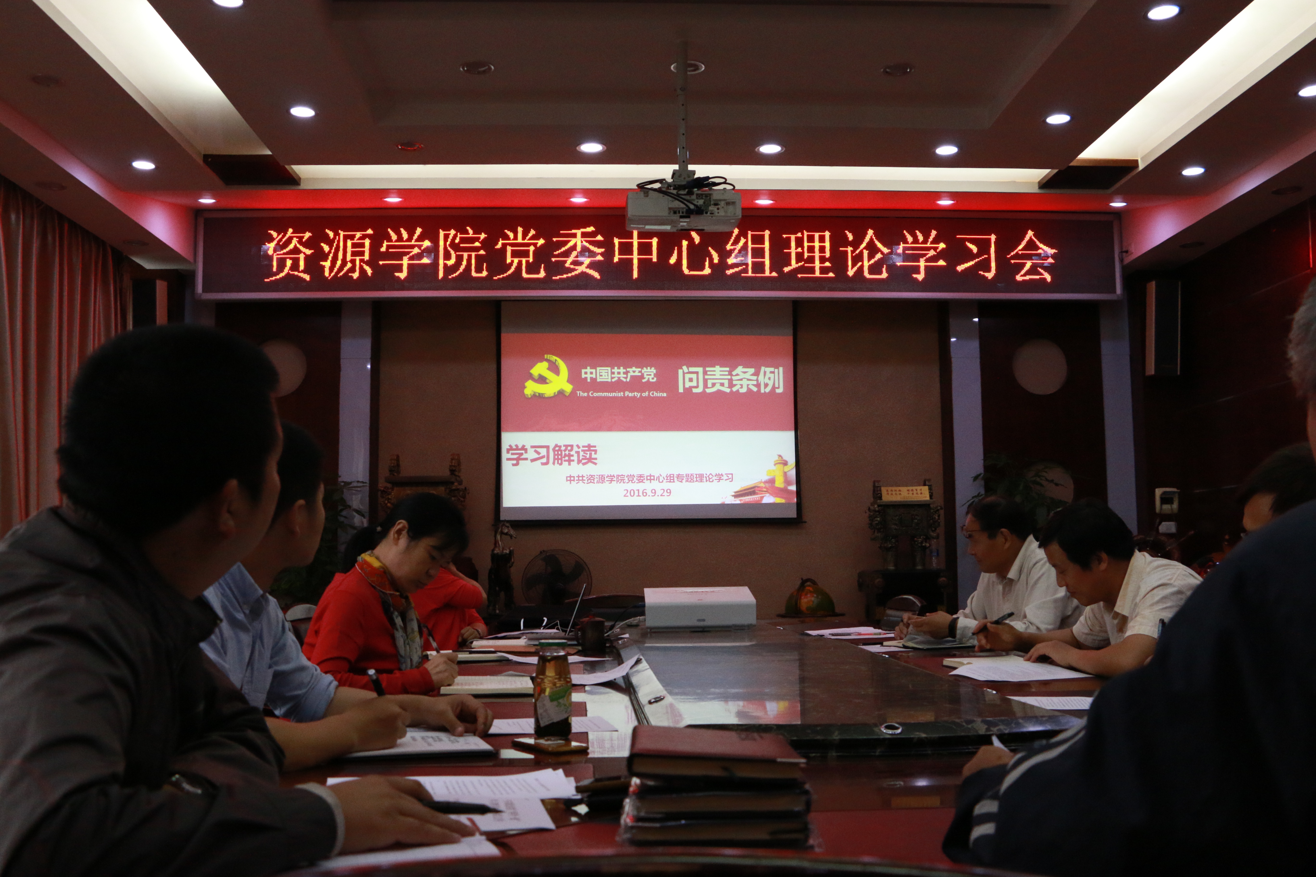 党委中心组在主楼328会议室开展理论学习会。院党委书记郭秀蓉、副书记张建华、副院长姚光庆、石万忠,以及各教工党支部书记参与了学习,会议由郭秀蓉主持。