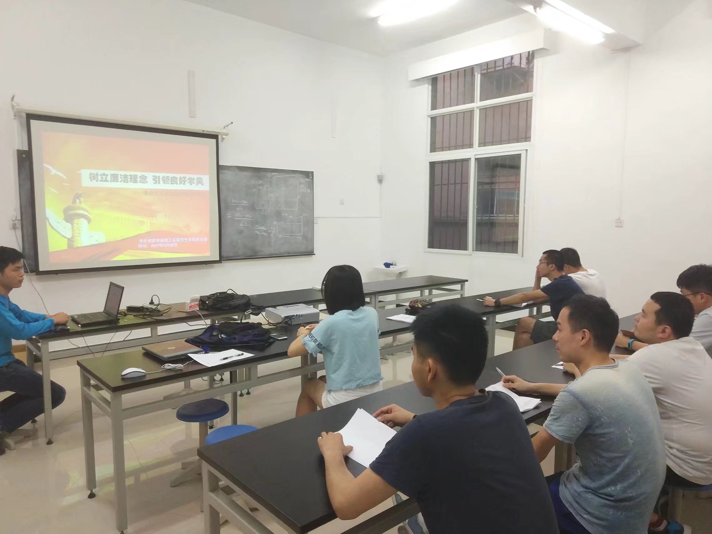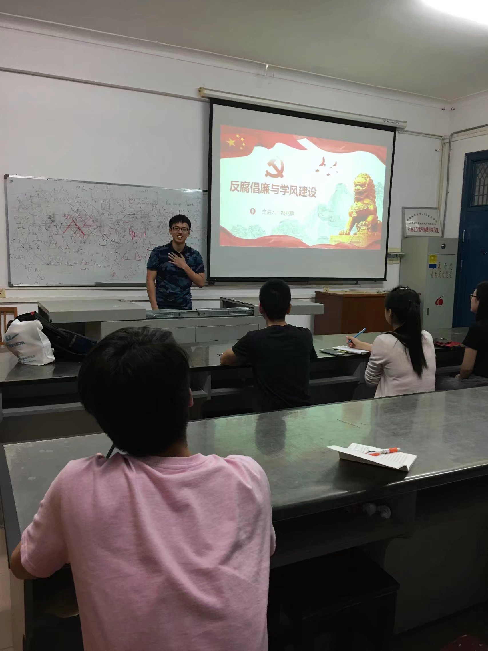 16级石油系研究生第二党支部在地勘楼734室开展“反腐倡廉和学风建设”主题活动,会议由支部书记秦曰涵主持。魏兆麟同志通过PPT展示的形式,以“反腐倡廉学风建设”为主题,向大家展示了我国历史上腐败的案件、何为学术腐败,以及作为研究生应该怎样做到学术廉洁。