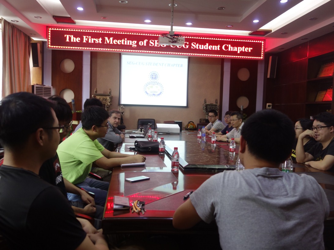 学生分会的成立表示祝贺,他向全体成员详细地介绍了SEG学生分会设立的初衷、运行机制以及学生分会执行委员会的职责,强调我们要抓住机会,广泛吸纳成员,定期开展多种形式的讲座、研讨会和野外考察。之后,Lentz教授根据自己的实际经历,以“安全”为主题给大家做了一场别开生面的讲座,希望学生分会在开展野外考察时要装备齐全,牢记安全。