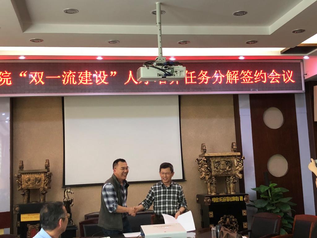 会议的议题有三项:周口店实践教学改革研讨、督导听课意见反馈和“双一流建设”人才培养任务分解签约。教学委员们结合野外实践教学资源以及教学内容的需求等方面,对周口店实践教学改革进行了认真研讨,最后决定由现行的6周周口店实践教学改革为4周周口店+2周秭归实习方案。学院督导对近期听课情况进行了反馈,指出了部分任课教师授课的优缺点,并提出了改进建议。李建威院长代表学院分别与四个专业负责人签订了人才培养任务分解协议,在协议中明确了建设任务及权利。李建威院长最后总结发言。