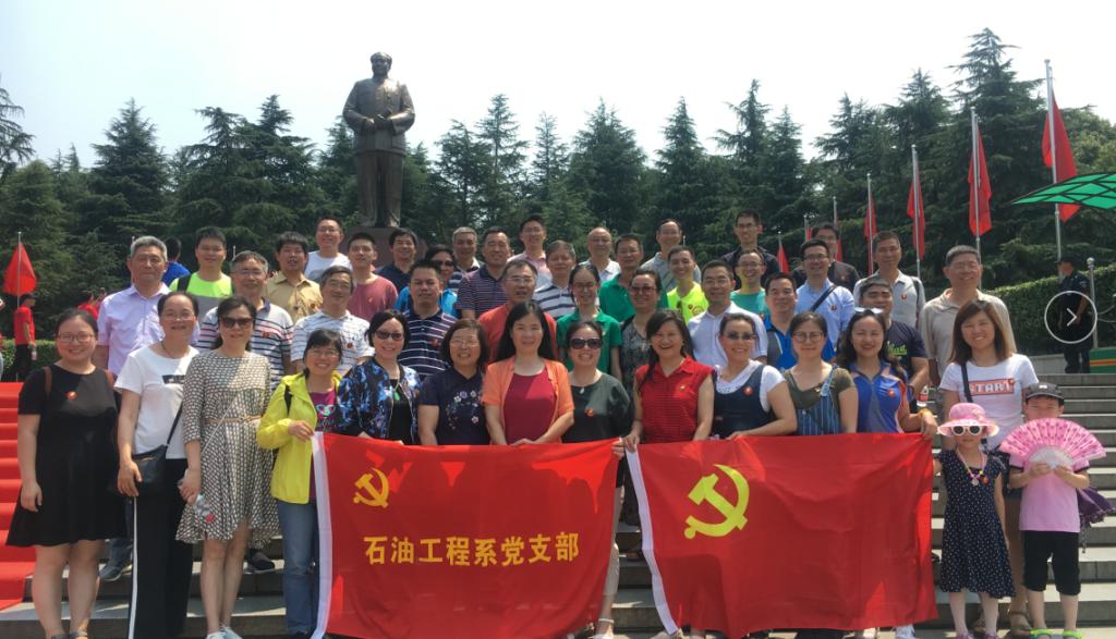 石油工程系党支部和石油地质系党支部及家属一行50人,怀着对毛主席和无数革命先烈的崇高敬意,踏上了湖南长沙-韶山红色学习之旅。6月15日下午到达长沙后前往橘子洲头,大家手握党旗,站立在青年毛主席的雕像旁,看着湘江北去,感受橘子洲头的魅力,情不自禁地吟诵起《沁园春·长沙》“......问苍茫大地,谁主沉浮?”一代伟人俯视沧海横流纷纭世事,斯人当大任的雄心气概震撼着每一个同志的心灵。党员同志们感慨万千,更加坚定了自身理想信念,激发了爱党爱国热情。