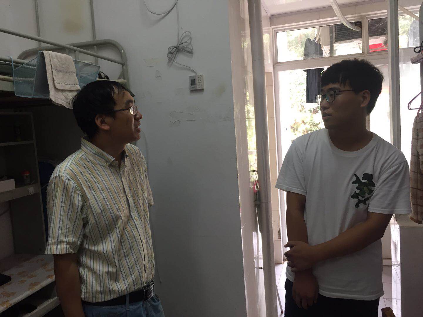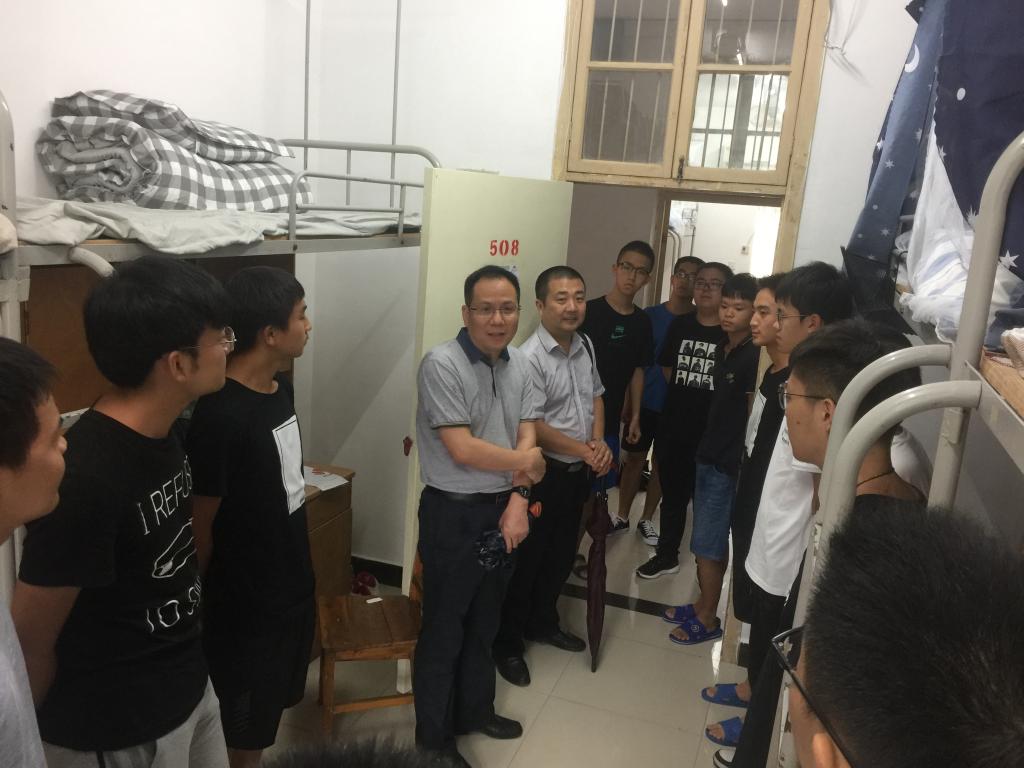 9月2日下午,院党委书记李宇凯、副院长赵葵东、院党委副书记张建华、2018级本科生辅导员王向东一行前往先后来到本科生、研究生宿舍,看望新生及家长,为他们带来最亲切的慰问,并与各专业的新生们交谈,询问学生入校适应情况、生活用品是否齐备以及家庭状况,对新生们提出殷切期望,鼓励他们尽快适应大学生活,建立起学风优良,生活规律的宿舍氛围,希望他们积极响应习总书记对青年一代的号召,做新一代“有理想、有本领、有担当”的青年学子。