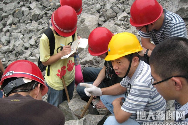 李建威与学生在湖北铜山口铜钼矿区进行野外考察时给学生现场讲解