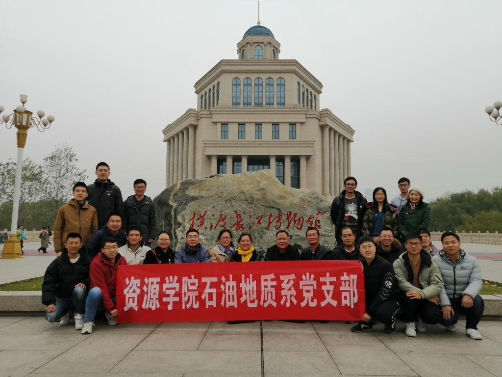 参观结束后,大家在博物馆门前高举党旗合影留念。