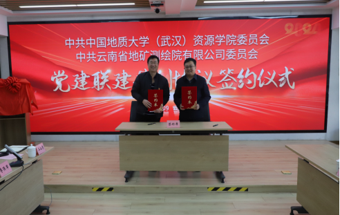 和云南地矿测绘院签署《党建联建共创协议》,为党建联建共创示范基地揭牌。