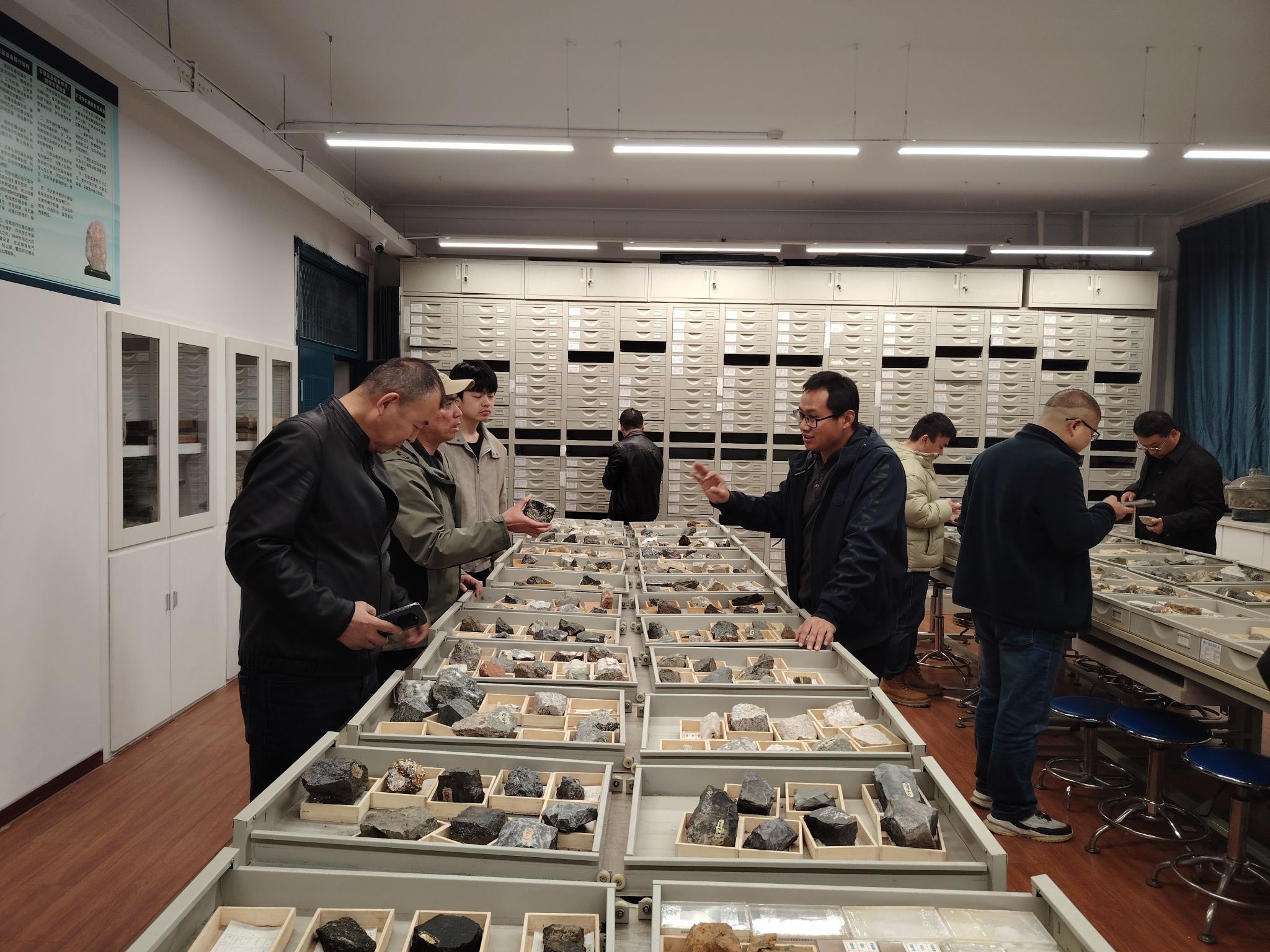 3月19日,研修班在矿床学实验室、超大型矿床实验室开展标本观摩实践课。