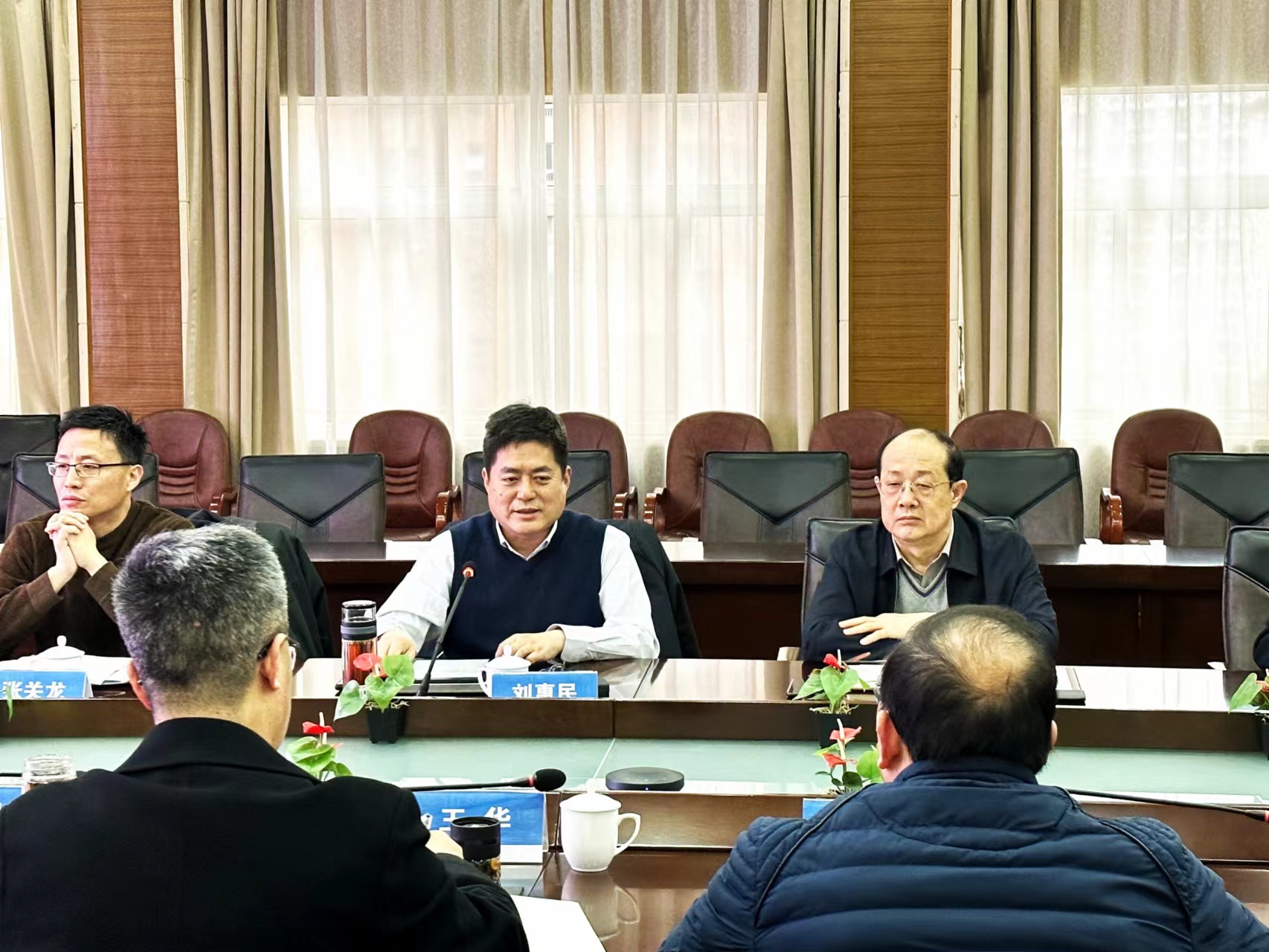王华对刘惠民一行来校调研表示欢迎,并从师资队伍、学科方向、科学研究、科技创新平台、国际合作等方面介绍学校整体情况。他感谢胜利油田长期以来对学校全方位的大力支持,希望双方深化战略合作,创新合作模式,在服务“百年胜利”建设的同时,推动学校高质量发展。