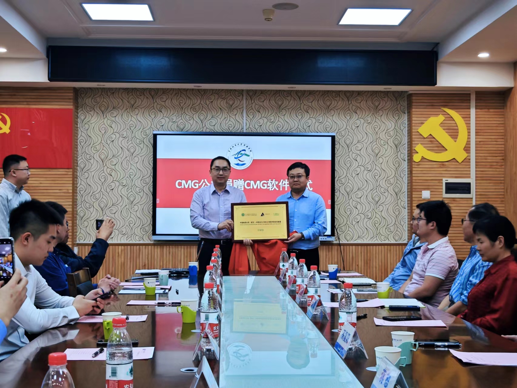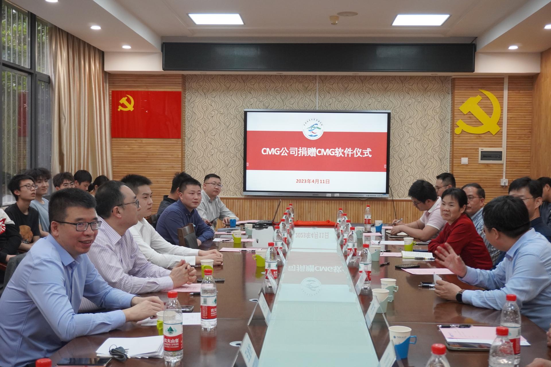 201会议室举行。北京中科合力科技发展有限责任公司总经理明跃,副总经理、CMG公司中国区首席代表刘大宝、项目经理刘帅,学院党委书记高复阳、油气勘探开发理论与技术湖北省重点实验室主任龚斌教授、构造与油气资源教育部重点实验室主任蒋恕教授、石油工程系党支部书记谢丛姣教授和师生代表参加会议。