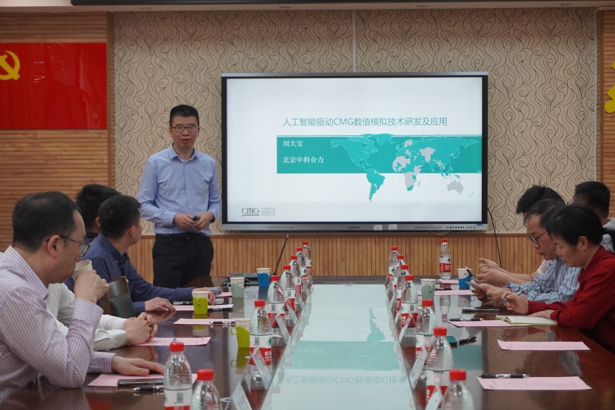 会上,刘大宝以“人工智能驱动的CMG数值模拟技术研发及应用”为题作学术报告。双方人员围绕碳中和及能源转型领域大型化、复杂化和一体化数值模拟应用经验、油藏数值模拟软件的开发与应用、人工智能技术发展、人才培养以及产学研结合等方面开展深入交流与探讨。