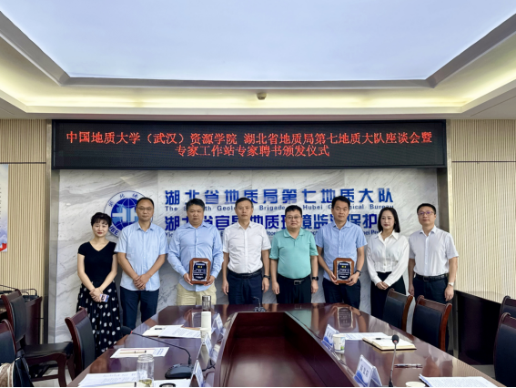 与湖北省地质局第七地质大队举行产学研合作座谈暨专家工作站首席专家聘任仪式。党委书记高复阳,副院长沈传波一行9人参加会议,湖北地质七大队党委书记胡胜华主持会议并为赵新福教授、蒋恕教授颁发首席专家聘书。湖北省地质局科技处副处长辛莉,第七地质大队队长李一鸣、副队长兼总工程师聂开红,宜昌市夷陵区科技局党组书记、局长陈孝定,宜昌市夷陵区科协党组成员、副主席隗祯祯等出席会议。