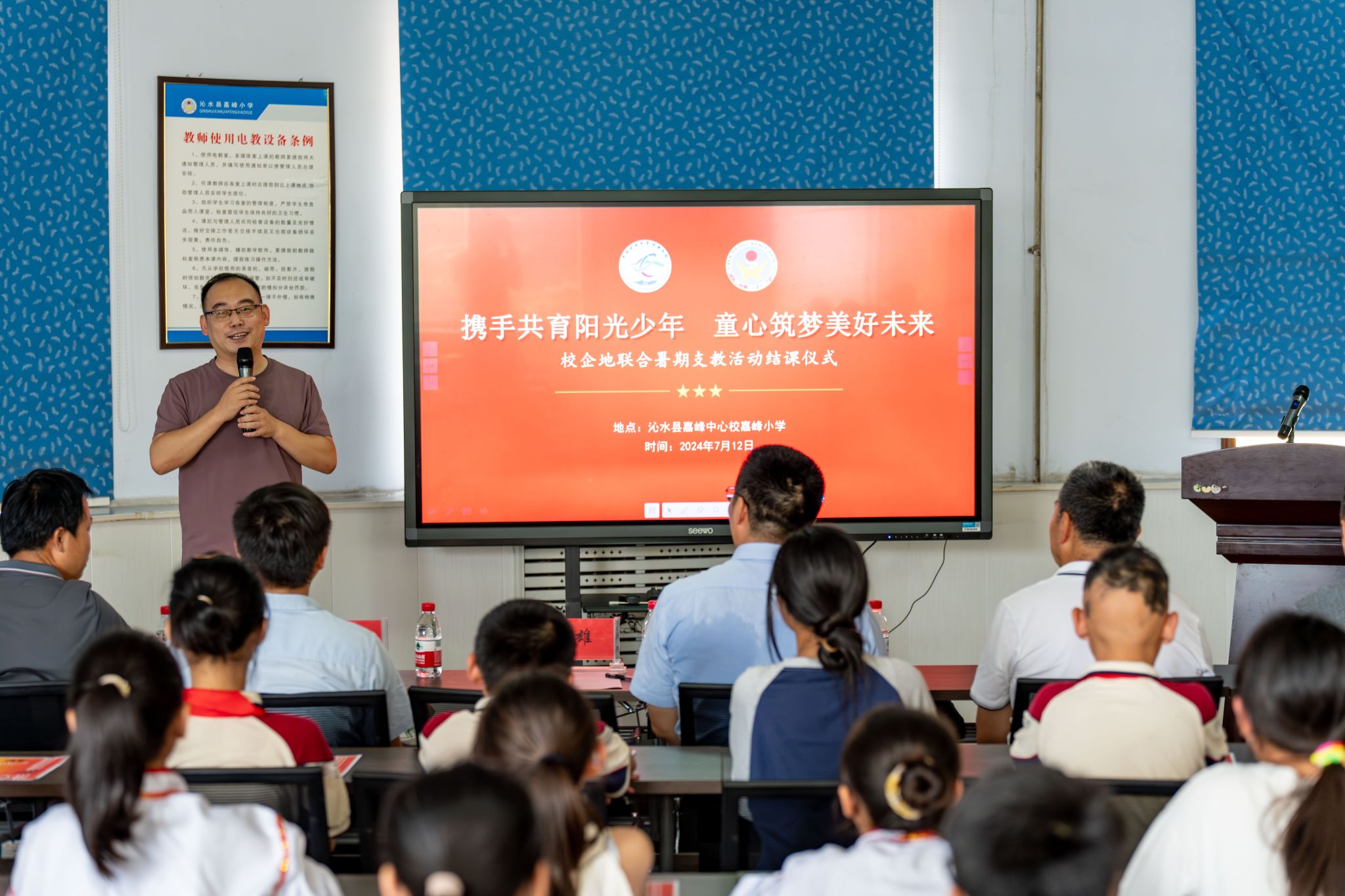 7月12日下午,由资源学院、共青团沁水县委联合举办的“携手共育阳光少年 童心筑梦美好未来”暑期支教活动结课仪式在沁水县嘉峰小学顺利举行。资源学院院长严德天、党委副书记谭文伦、“全国模范教师”焦养泉、盆地矿产系党支部书记王小明、盆地矿产系主任甘华军、副主任吴立群,共青团沁水县委书记王雄,嘉峰镇嘉峰中心校校长杨震宏,嘉峰镇嘉峰小学教职工、学生以及“牵手筑梦”实践服务团成员参加仪式。