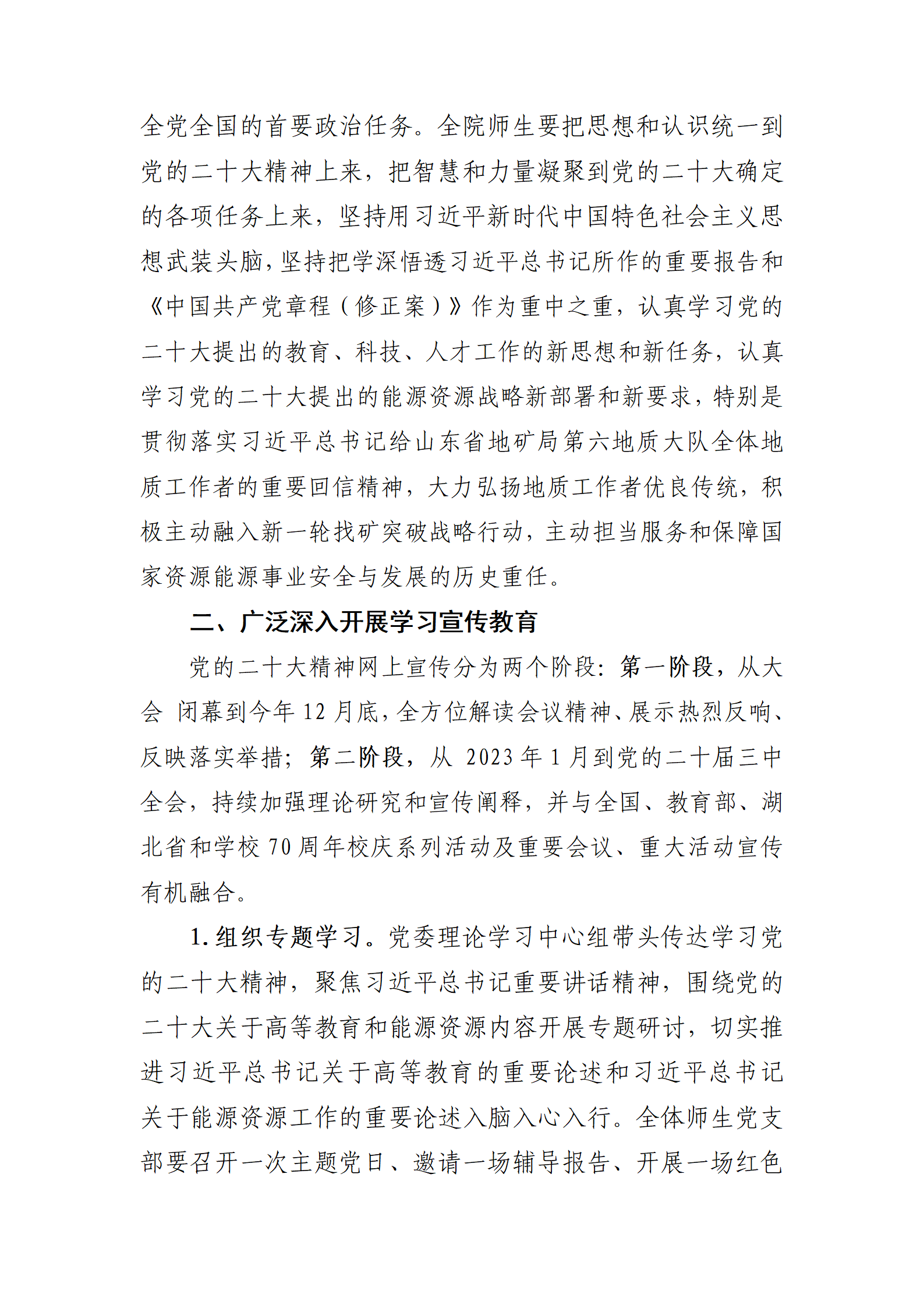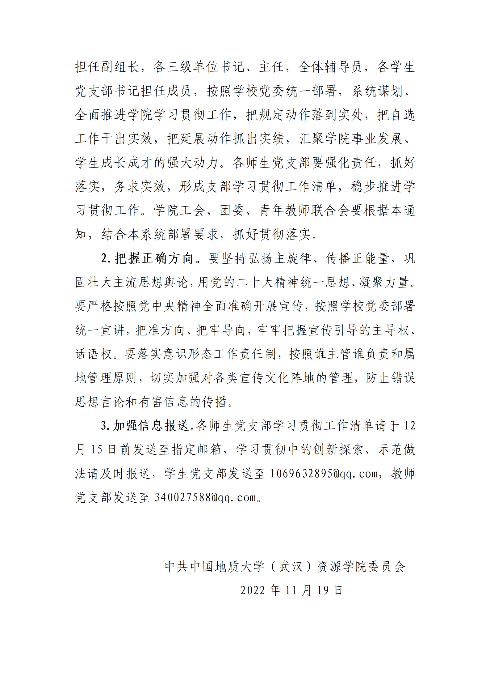 中共中国地质大学(武汉)资源学院委员会关于学习宣传贯彻党的二十大精神的通知