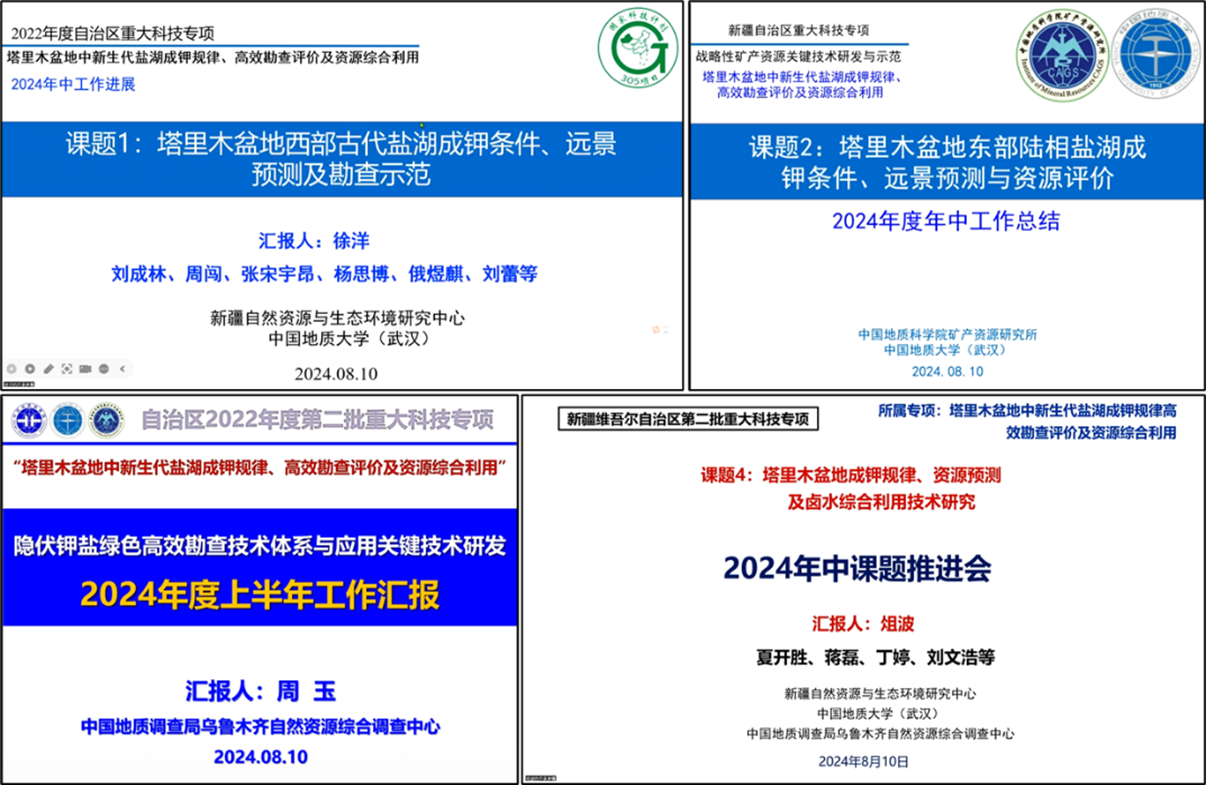 (通讯员周闯)8月10日,新疆维吾尔自治区重大科技专项—“塔里木盆地中新生代盐湖成钾规律、高效勘查评价及资源综合利用”项目组召开2024年年中总结推进会,新疆维吾尔自治区人民政府305项目办公室主任马华东、副主任朱炳玉,项目首席科学家、中国地质大学(武汉)资源学院刘成林教授等参加会议。刘成林主持会议。刘成林从项目概况、前期取得的成果、经费执行情况和下一步重点工作内容等方面汇报了项目总体进度。他指出,在前期大量野外工作基础上,钾盐成矿规律方面取得了许多新认识,为下一步工作提供了重要依据,在项目后续时间内,要加速推进剩余任务的执行,以确保项目顺利完工,同时在项目实施过程中需强化各课题之间的交流,提升工作效率。