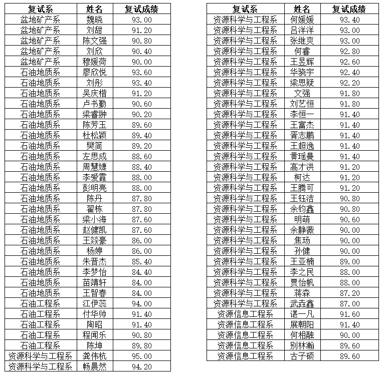 资源学院推免生第一批复试成绩(9月26日复试)
