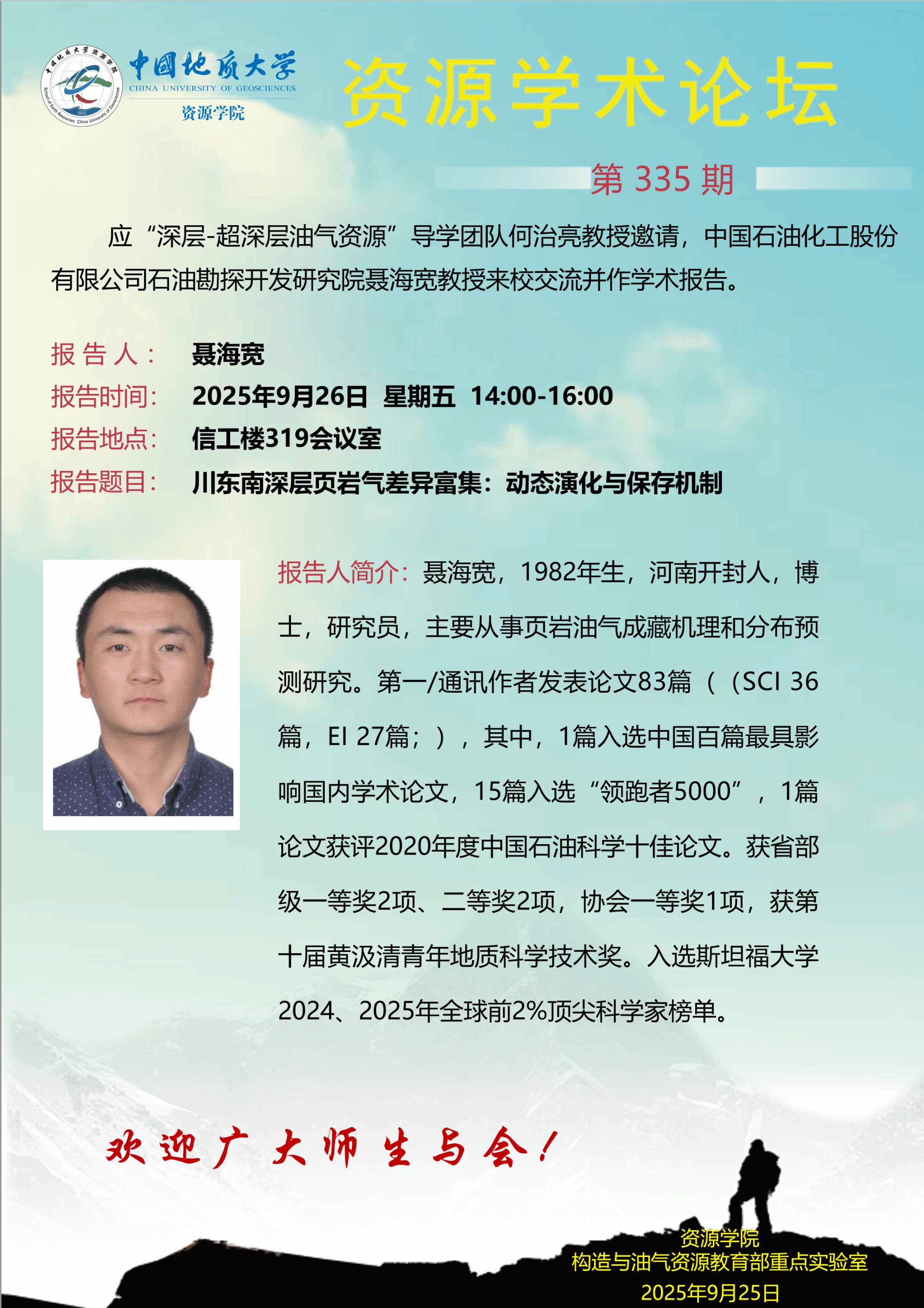 【9月26日】第335期资源学术论坛:聂海宽学术报告