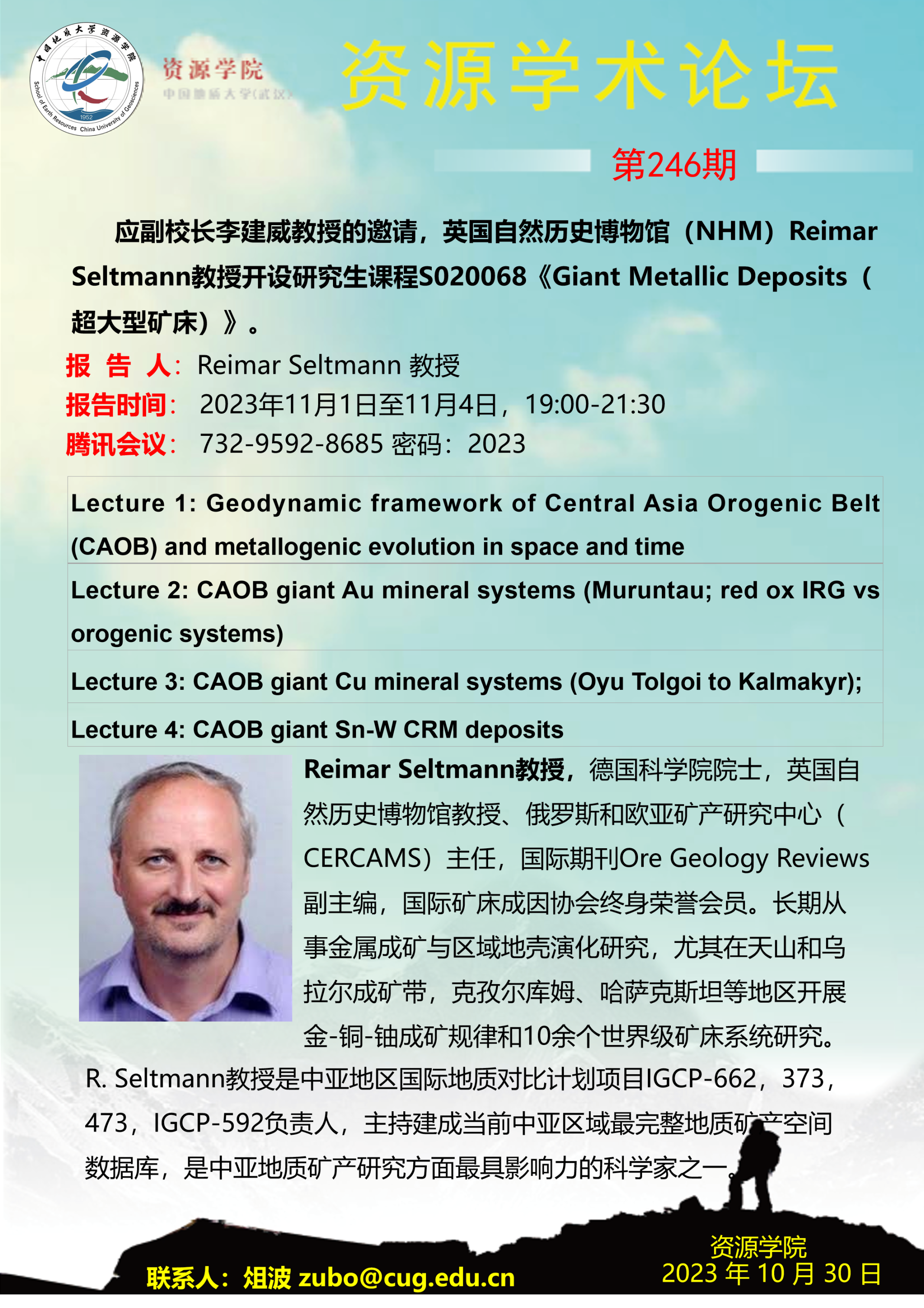 【11月1日-11月4日】第246期资源学术论坛:Reimar Seltmann学术报告